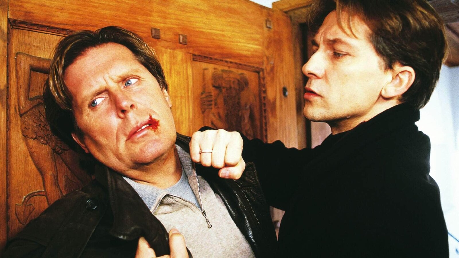 Fesseln der LiebeVanessas Mann Wolfgang (Thomas Schücke, r.) hat ein Rendezvous zwischen Stefan (Sigmar Solbach) und seiner Frau beobachtet und rastet völlig aus. Er schlägt Stefan nieder und bedroht ihn...Bild: © MG RTL / Elke Werner