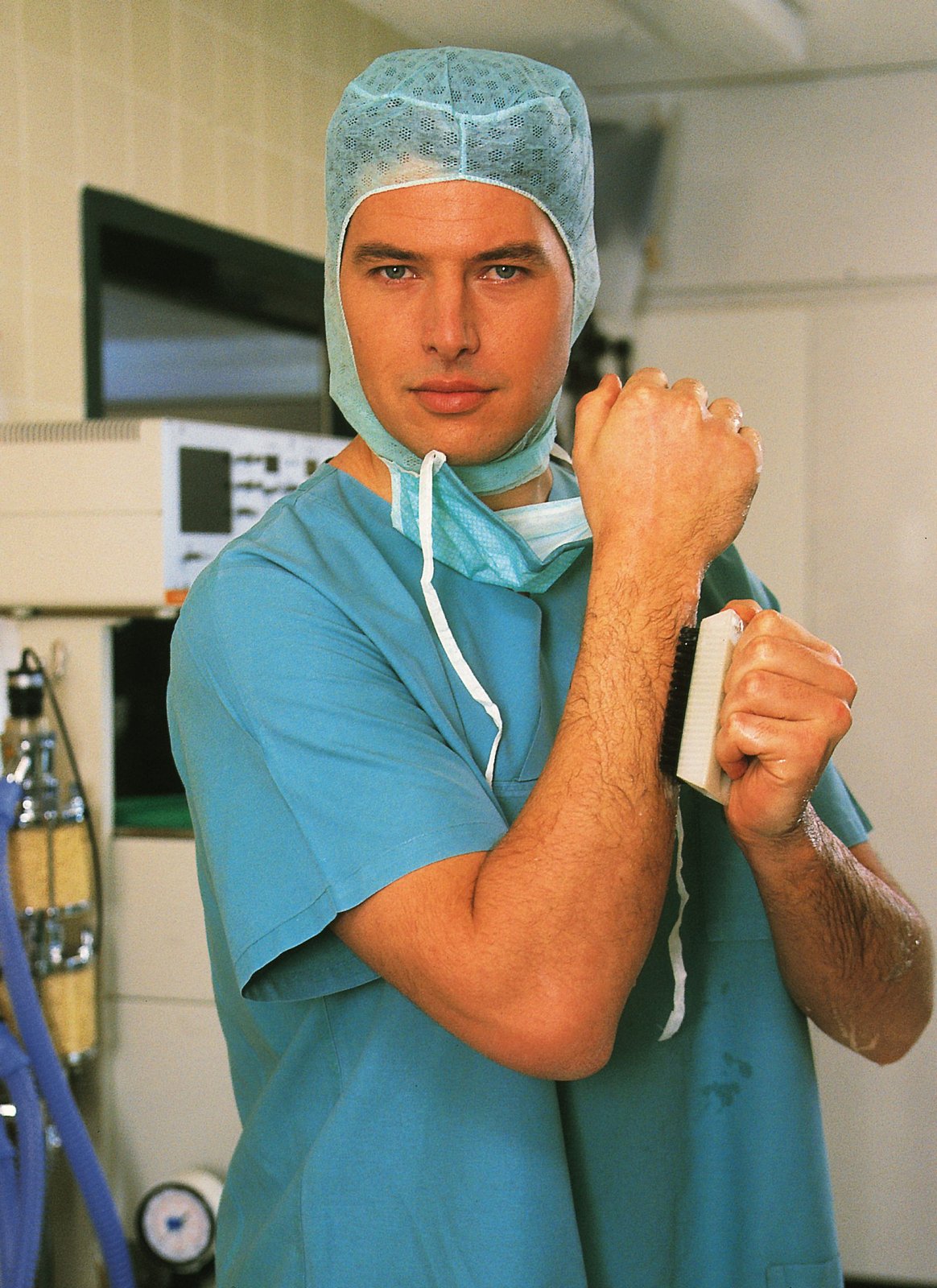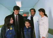 SchlagabtauschDr. Frank (Sigmar Solbach, r.) und Dr. Roehrs (Siemen Rühaak, 3.v.r.) müssen Daniel (Christian Polito, lieg.) vor seinem Vater (Hans Georg Panczak) schützen. Schwester Petra (Annette du Moulin) kümmert sich um den Jungen.Bild: © MG RTL D