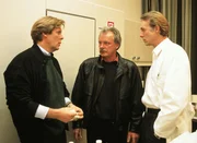Alarm im OPDr. Stefan Frank (Sigmar Solbach, l.) bespricht mit Kommissar Lüder (Peter Hart, M.) und Dr. Christian Roehrs (Siemen Rühaak) den Zustand von Bachmann.Bild: © RTLplus