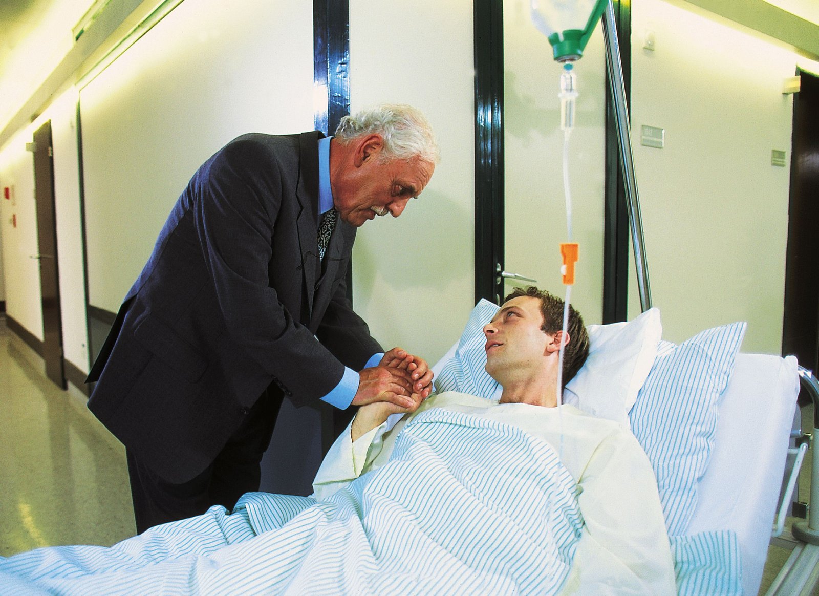 Zu jung zum SterbenBankier Ziemann (Klaus Höhne, l.) versöhnt sich mit seinem Sohn Michael (Oliver Bethke) am Krankenbett.Bild: © RTLplus