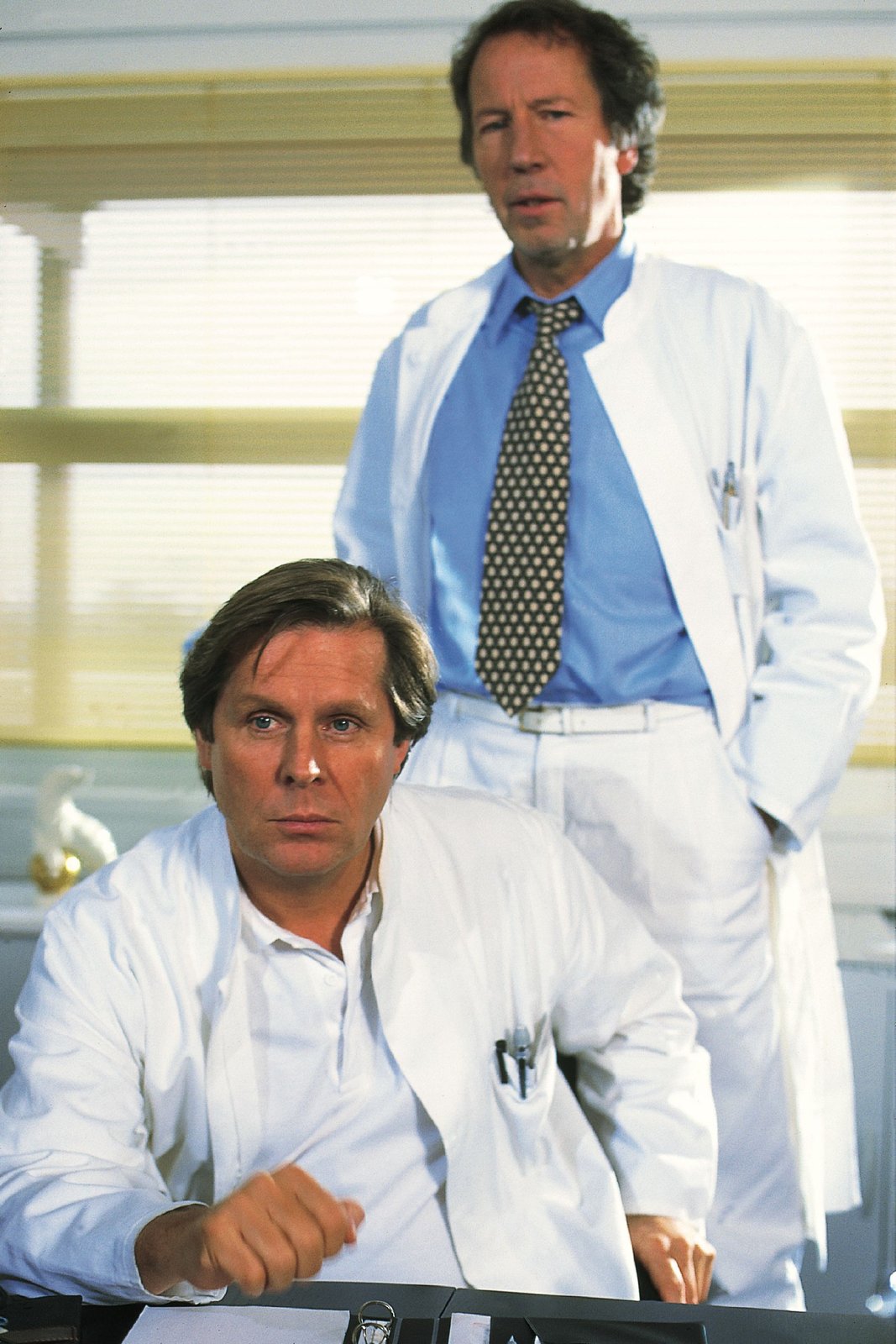 In letzter MinuteDas wird Dr. Stefan Frank (Sigmar Solbach, r.) seinem Kollegen Dr. Roehrs (Siemen Rühaak) niemals vergessen: Roehrs hat seiner Tochter Iris das Leben gerettet.Bild: © MG RTL D
