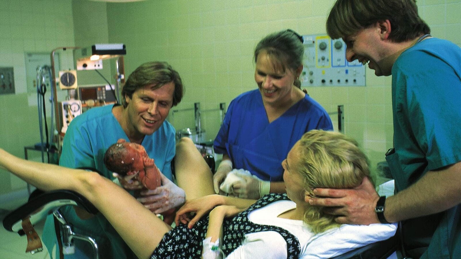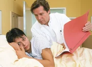 Wie ein stummer Schrei nach LiebeDr. Stefan Frank (Sigmar Solbach, l.) hat bei Barbara (Anette Hellwig) die Geburt eingeleitet, nachdem sie schwer gestürzt ist. Sie bringt ein gesundes Kind zur Welt ...Bild: © MG RTL / Elke Werner