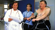Natürlicher Tod oder Mord?Dr. Stefan Frank (Sigmar Solbach, l.) untersucht zusammen mit Schwester Renate (Ursula Buschhorn) den Bauunternehmer Alfons Meyer (Alexander May).Bild: © MG RTL D / Elke Werner