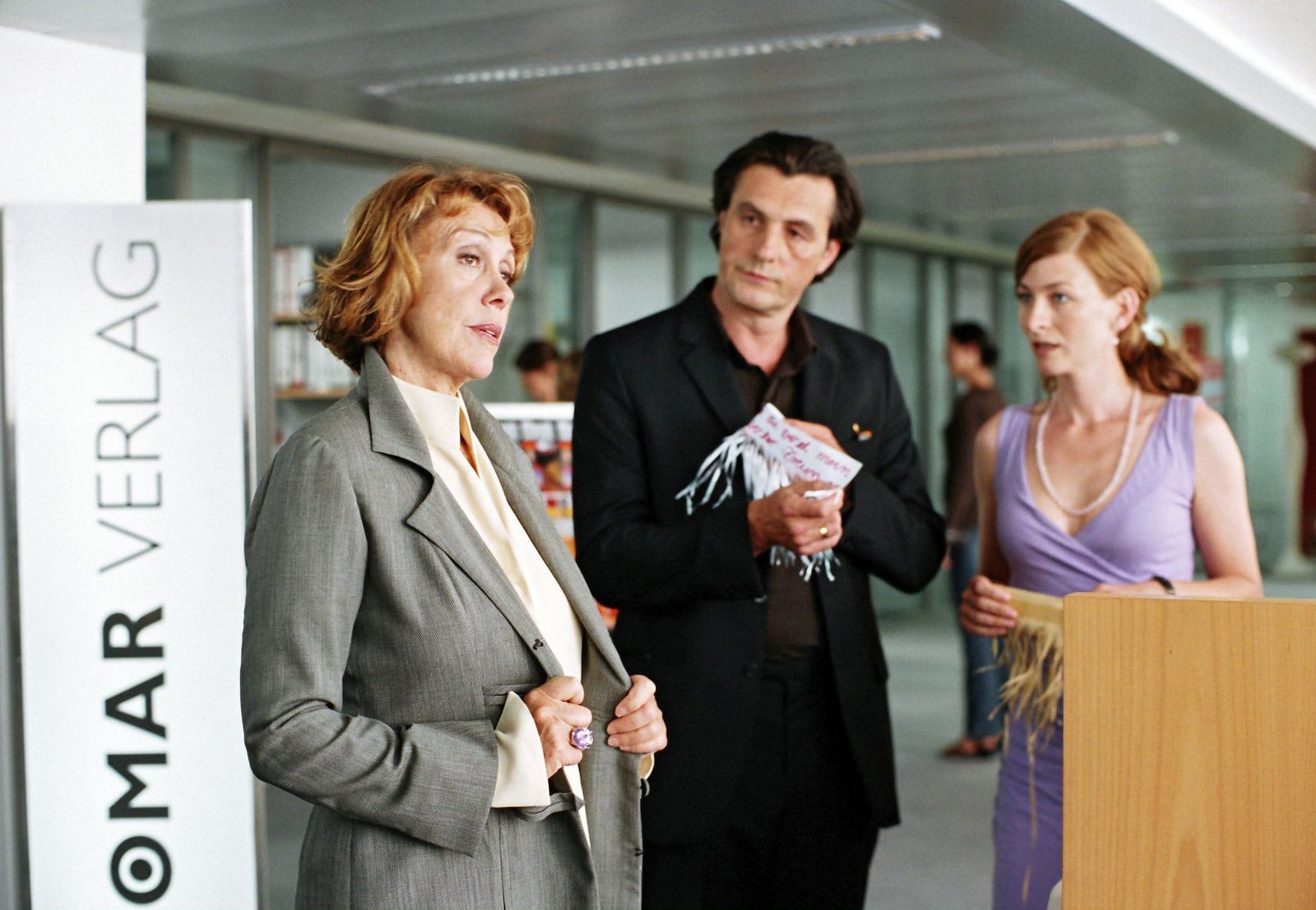Drei teuflisch starke Frauen - Eine für alleDana (Gaby Dohm, links) muss ihrer intriganten Kollegin Elli Peters (Tatjana Alexander) und ihrem Chef Leuenberger (Otto Kukla) etwas erklären.Bild: © "ARD Degeto/Marco O. Pichler"