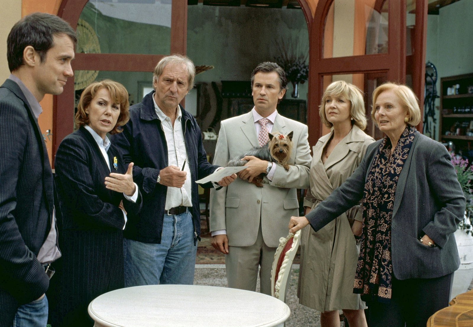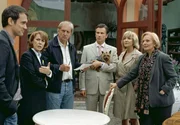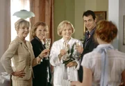 Drei teuflisch starke Frauen - Die ZerreißprobeMaria (Ruth Maria Kubitschek) und Julie (Gila von Weitershausen, oben rechts) schauen amüsiert zu, wie Dana (Gaby Dohm, 2.v.re.) ihrem Herzensmann Christian (Michael Mendl) vorspielt, sie wäre die Haushälterin von Veronika (Henny Reents) - die in Wahrheit die Haushälterin ist.Bild: © ZDF und ARD Degeto/Marco O. Pichler.