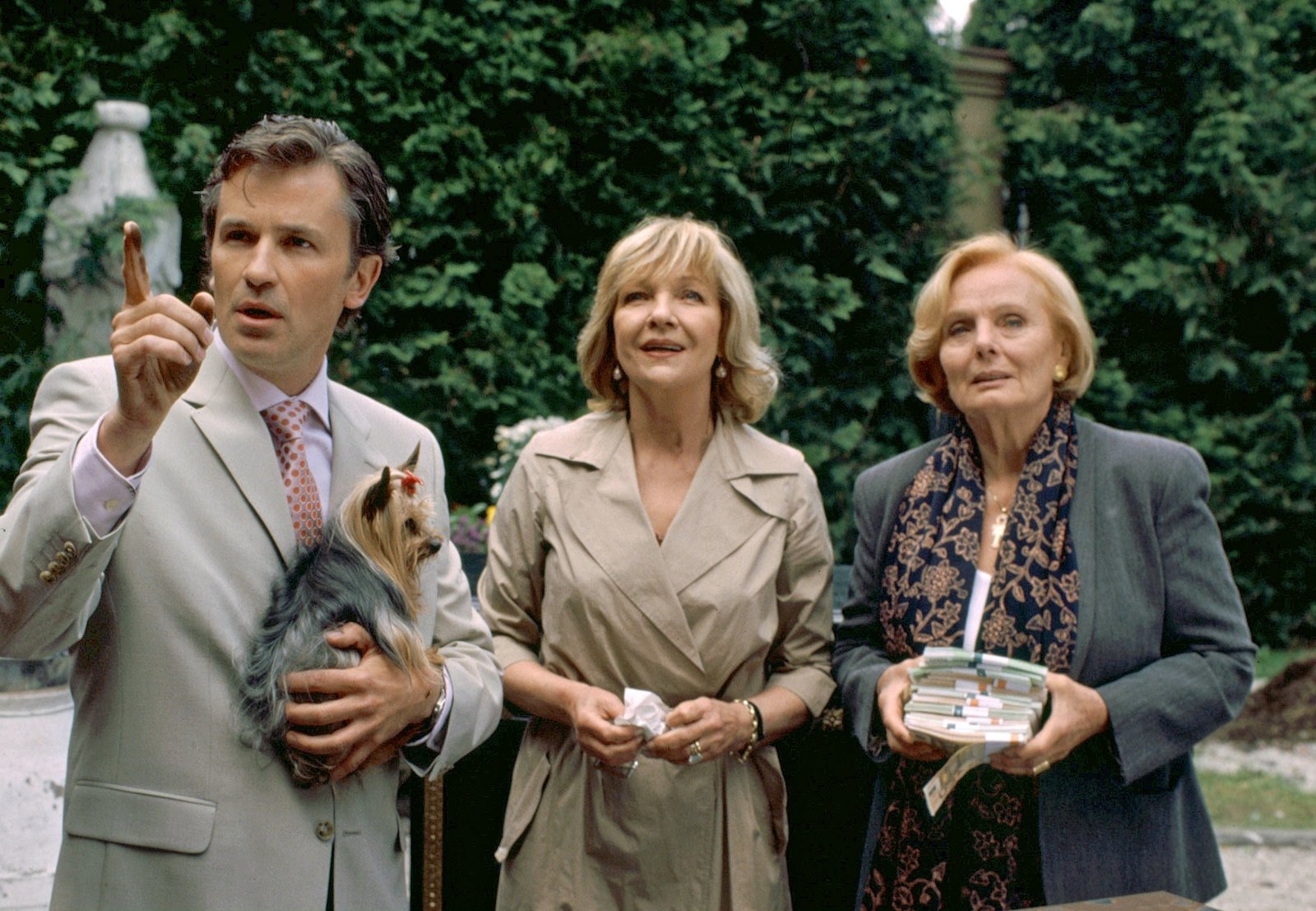 Drei teuflisch starke FrauenDer berüchtigte Immobilienhai Klaus Gruber (Timothy Peach) versteht plötzlich, dass Maria (Ruth Maria Kubitschek, rechts) und ihre Schwester Julie (Gila von Weitershausen) ihn aufs Kreuz gelegt und dabei eine Menge Geld für nichts abgeknöpft haben.Bild: © ARD Degeto/BR/Marco Orlando Pichler