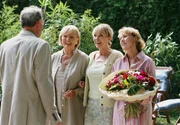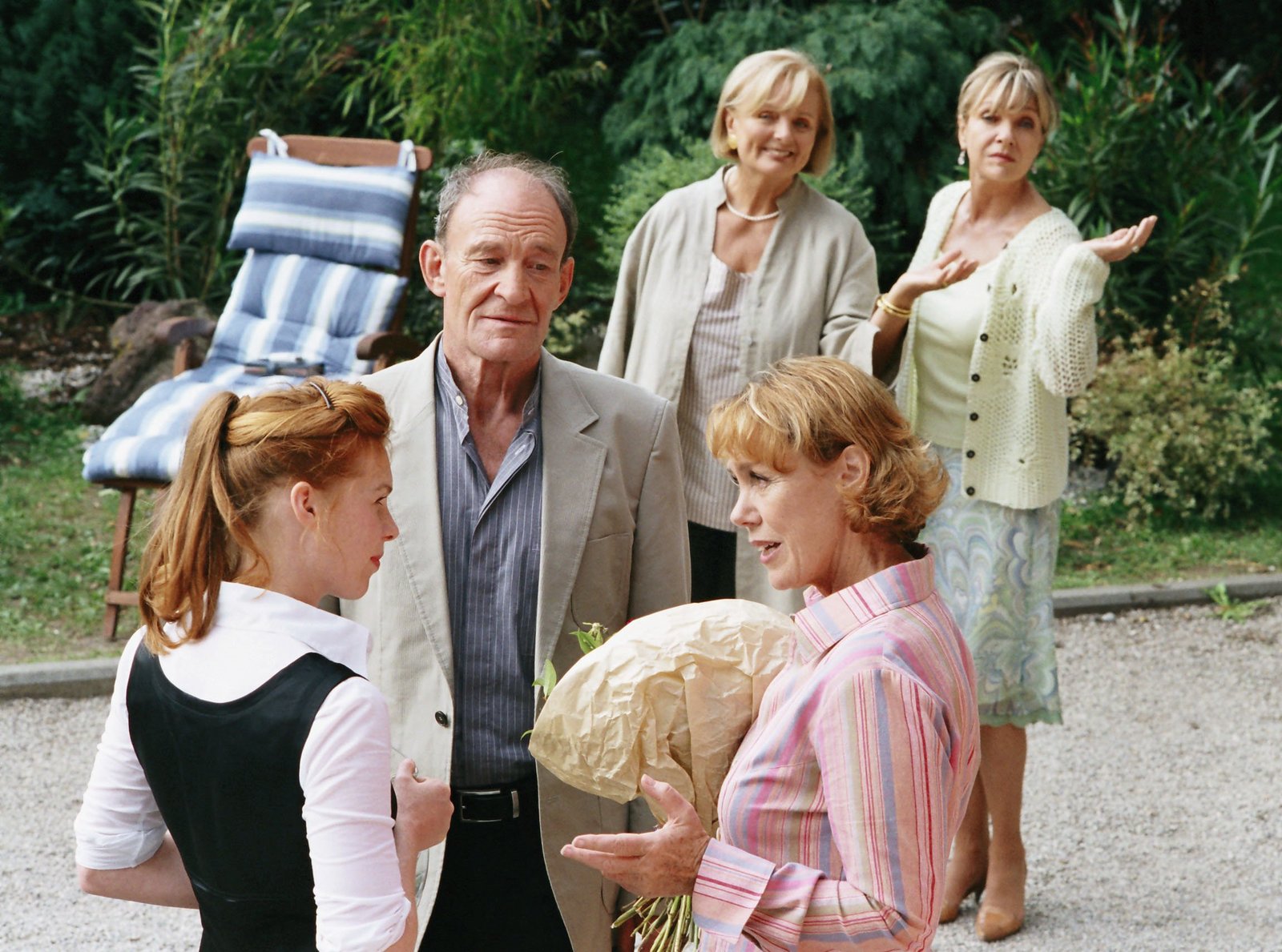 Drei teuflisch starke Frauen - Die ZerreißprobeMaria (Ruth Maria Kubitschek, 2. von rechts) und Julie (Gila von Weitershausen, 3. von links) beobachten, wie ihre Schwester Dana (Gaby Dohm) den charmanten Christian (Michael Mendl) kennenlernt.Bild: © ARD Degeto/BR/Marco Orlando Pichler
