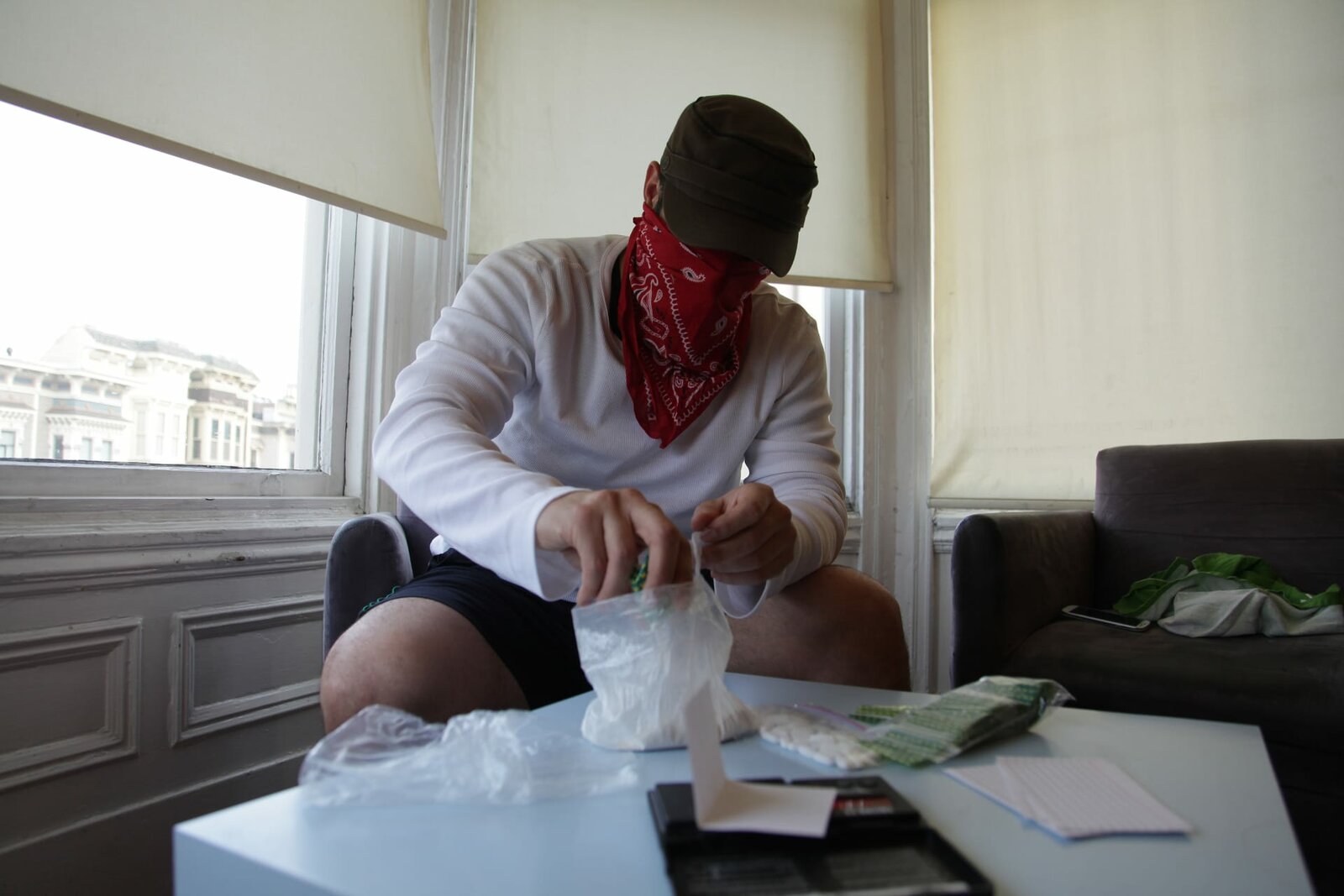 KokainkriseLocation: San Francisco, USA: 'Seth' the MDMA dealer, bags up party supplies for his customers (Photo Credit: Wall to Wall Media)Bild: © Wall to Wall Media / National Geographic Channels