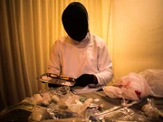 New Yorks DrogenkönigeA masked NYC dealer with a tray of heroin. New York is America?s largest city, a huge distribution hub with an equally large appetite for narcotics.Bild: © 1996–2013 National Geographic Society. All rights reserved.