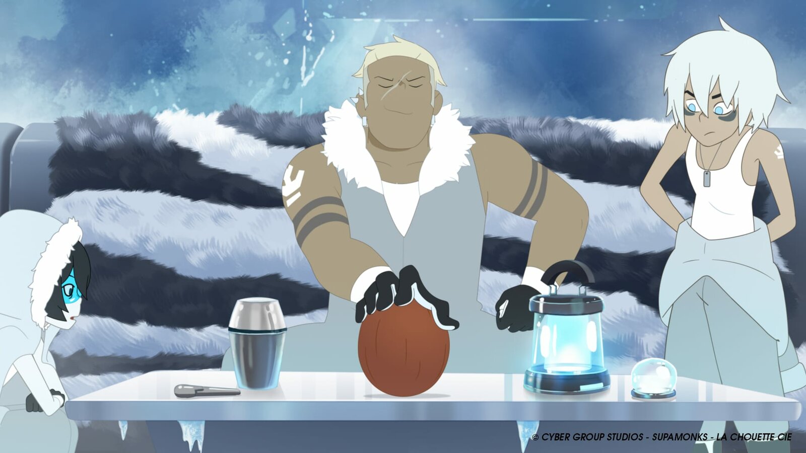 Die Spinnennetz-PisteMouse (Mitte) bietet Corto (rechts) die Stirn und verteidigt Team Pirates: Shark (mit Schild) und Ed.Bild: © WDR/2021 Cyber Group Studios