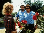 Engel in UniformJonathan (Michael Landon, r.) und Mark (Victor French, M.) besuchen die Frau eines Kollegen, der in Schwierigkeiten steckt.Bild: © Worldvision Enterprises, Inc. Lizenzbild frei