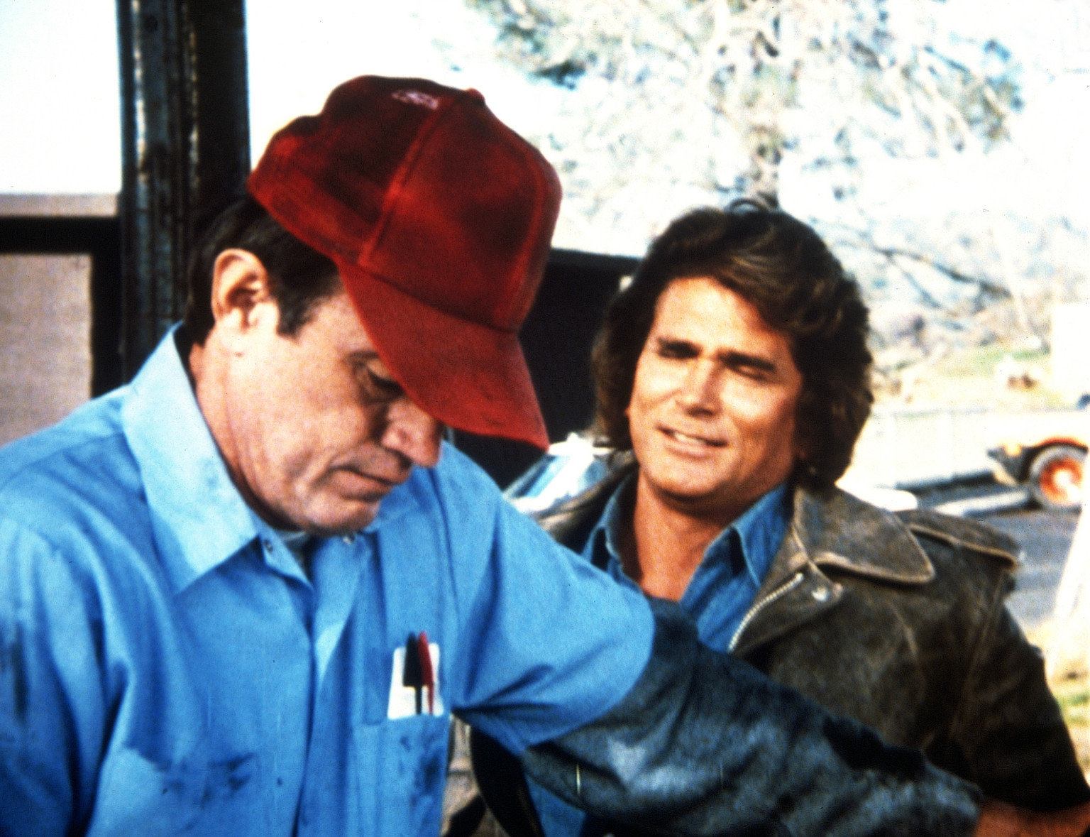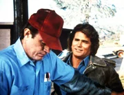 Auf den Schwingen der LiebeJonathan (Michael Landon, r.) freundet sich mit Earl (John Lawlor, l.) an, einem Tankstellenbesitzer, bei dem er einen Auftrag zu erfüllen hat.Bild: © ProSieben Media AG © Worldvision Enterprises, Inc.