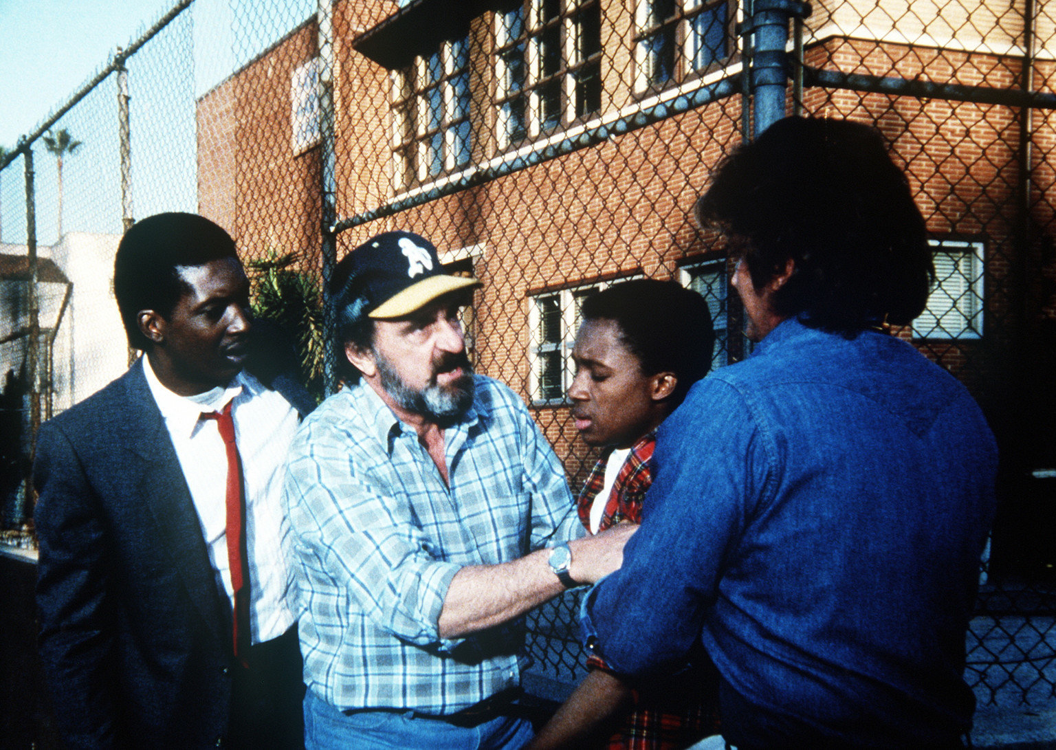 Nachsitzen fürs LebenWieder hat es einen Fall von Drogenmissbrauch an der Schule gegeben. Mark (Victor French, 2.v.l.) und Jonathan (Michael Landon, r.) greifen ein.Bild: © ProSieben Media AG © Worldvision Enterprises, Inc.