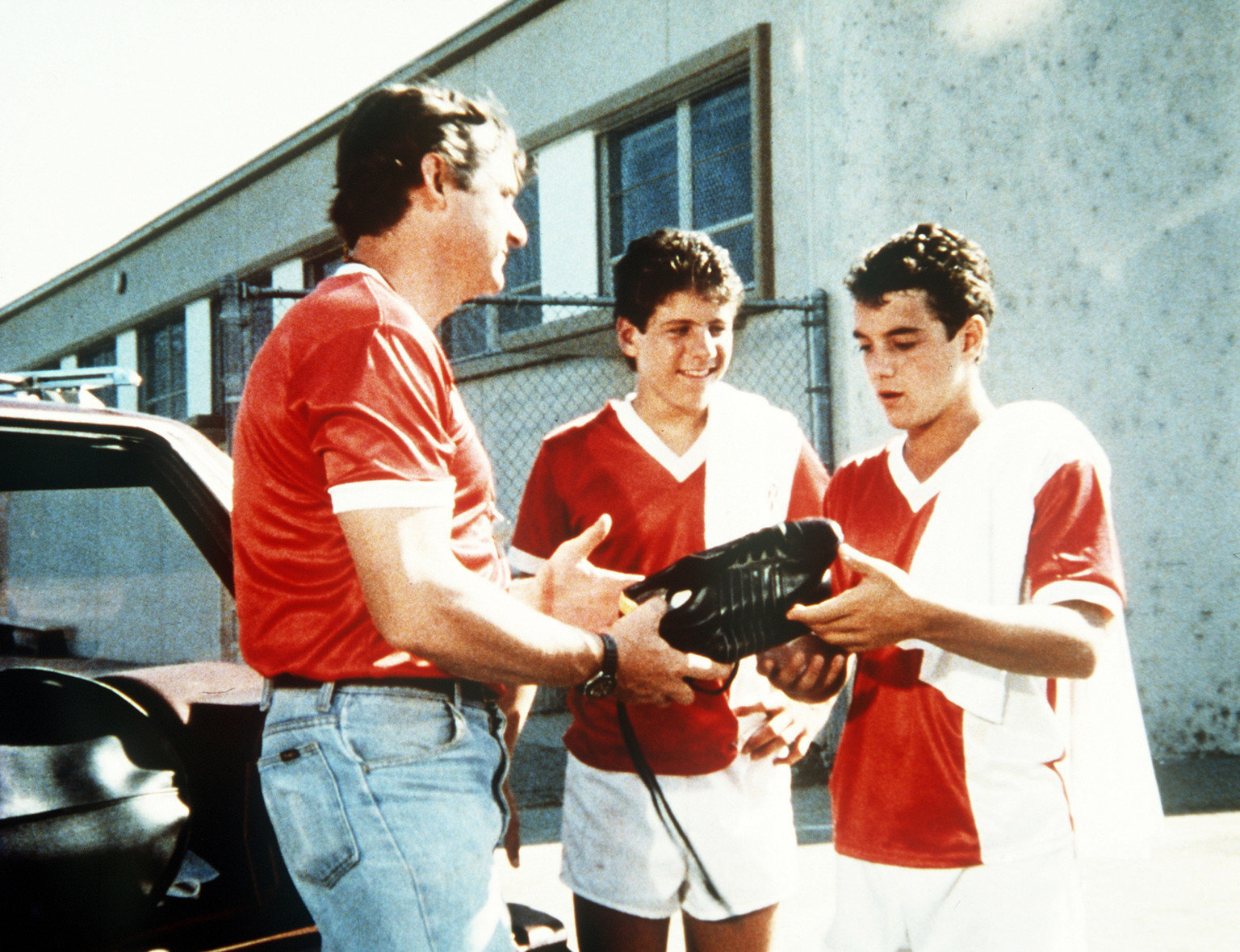 Wie der Staub an deinen FüßenRichard (James Whitmore Jr., l.), der Trainer der Fußballmannschaft, schenkt Larry (K.C. Martel, r.) ein paar neue Fußballschuhe.Bild: © ProSieben Media AG © Worldvision Enterprises, Inc.