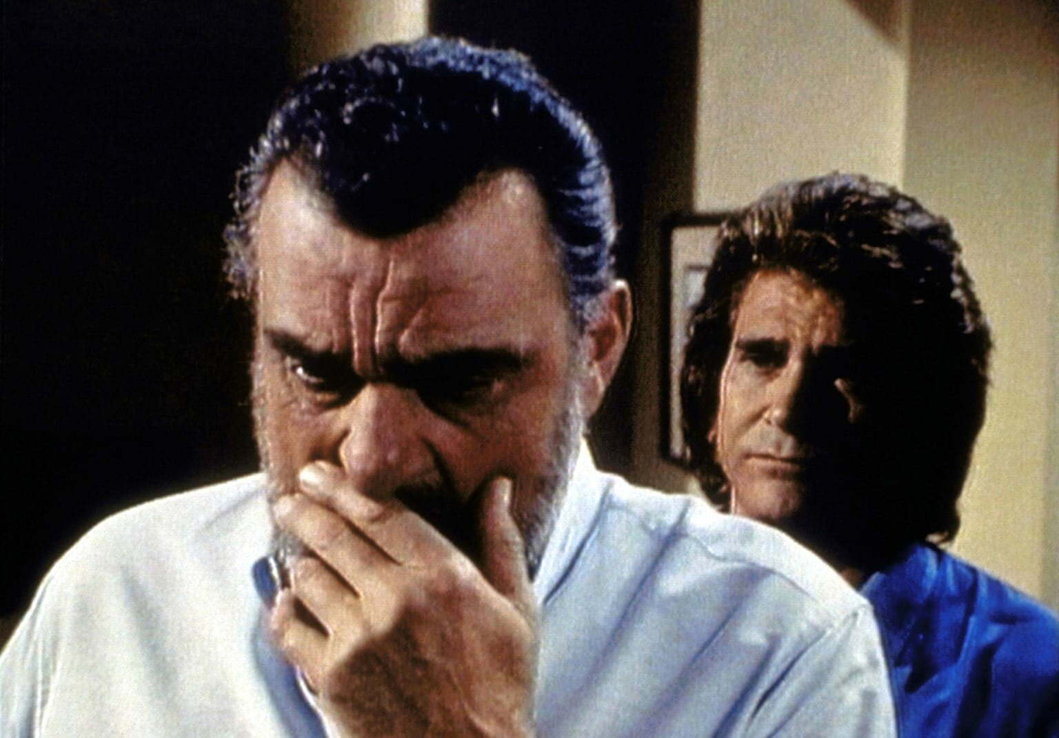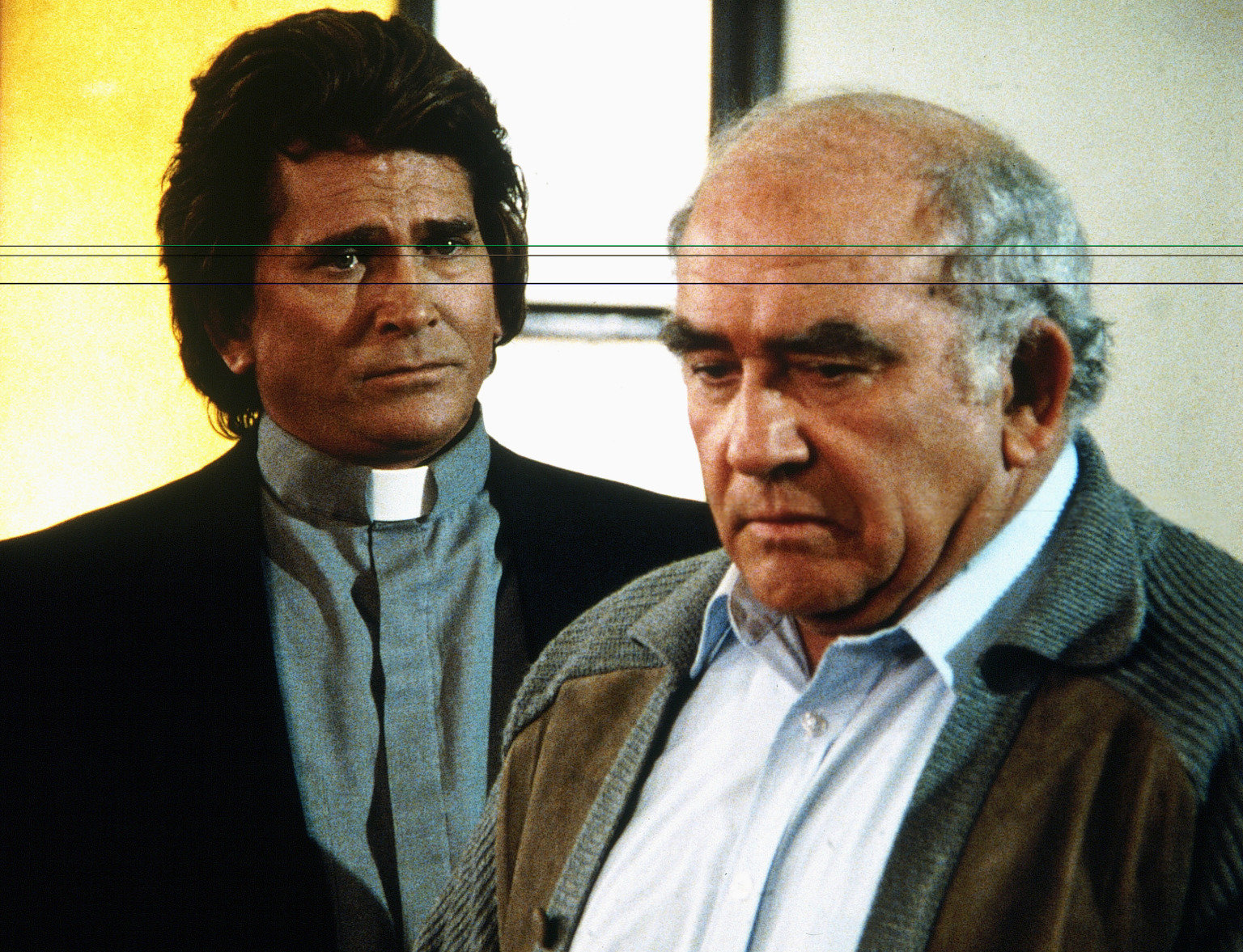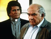 Der Engel mit dem "B" davorHarold (Edward Asner, r.) ist von dem Unfall, den er verursacht hat, tief erschüttert. Jonathan (Michael Landon, l.) versucht, ihn zu trösten.Bild: © ProSieben Media AG © Worldvision Enterprises, Inc.