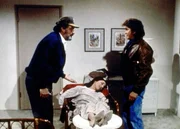 Verliebt in einen GeistMark (Victor French, l.) will Jonathan (Michael Landon, r.) nicht glauben, dass Birdy (Didi Conn) wegen des Geistes von Roger Bolt in Ohnmacht gefallen ist.Bild: © ProSieben Media AG © Worldvision Enterprises, Inc.