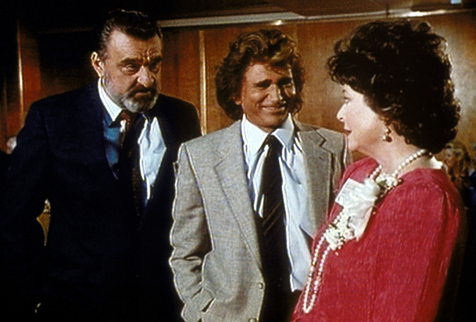 Das KlassentreffenJonathan (Michael Landon, M.) ist erfreut, Marks (Victor French, l.) High-School-Schwarm Marjorie Anderson (Eve Brent, r.) kennenzulernen.Bild: © ProSieben Media AG © Worldvision Enterprises, Inc.