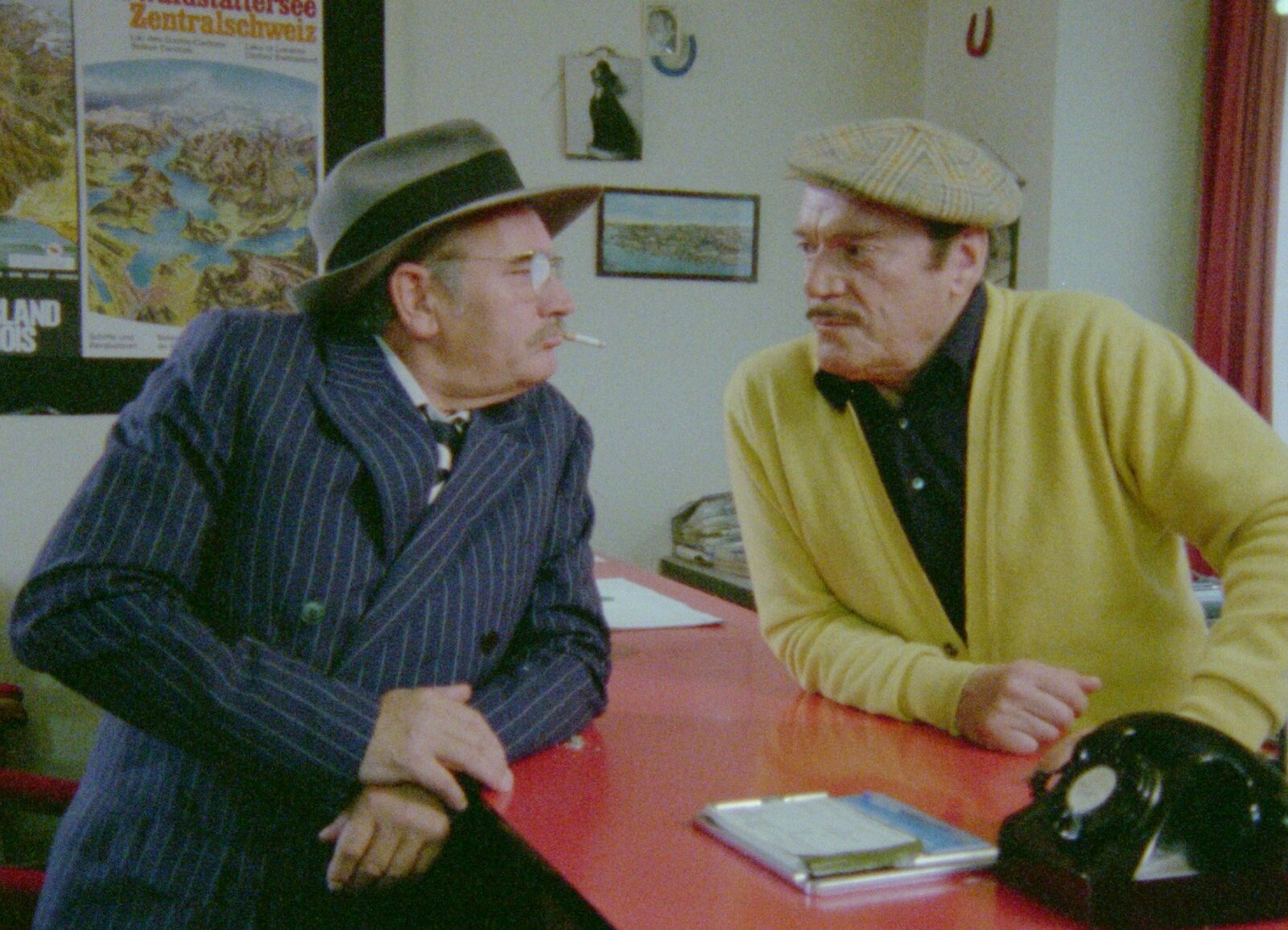 Eine Million in kleinen ScheinenEin Fall für Männdli Eine Million in kleinen Scheinen Staffel 1, Episode 11 Hilfe vom Detektivbüro: Inigo Gallo als Tobler, Ruedi Walter als Max Männdli, Erich Schellow als Herr SchäferBild: © SRF