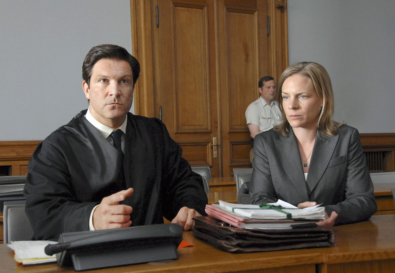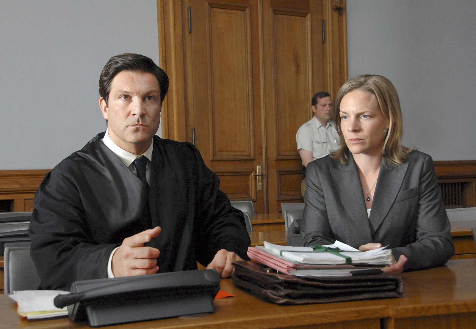SaubermännerAnwalt Florian (Francis Fulton-Smith) vertritt vor Gericht die allein erziehende, mittellosen Susanne Wörner (Eva Meier), die von einem angetrunkenen Bürgermeisterkandidaten angefahren wurde.Bild: © ARD Degeto/ARD Degeto/Susan R. Skelton