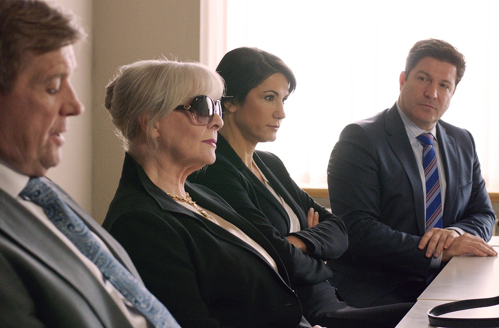 SaubermännerWährend der Verhandlung macht Sarah (Mariella Ahrens) sich eifrig Notizen, nicht ahnend, dass die "Spionin" Lilith (Susanne Bormann) alles im Blick hat.Bild: © "ARD Degeto/ARD Degeto/Susan R. Skelton" (S2)