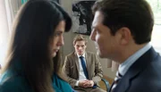 K.o.-TropfenFlorian Faber (Francis Fulton-Smith, r.) und Sarah Pohl (Mariella Ahrens, l.) geraten wegen des Falles Bertram aneinander. Anwaltskollege Marius Greiner (Remo Schulze, M.) verfolgt den Streit.Bild: © ARD