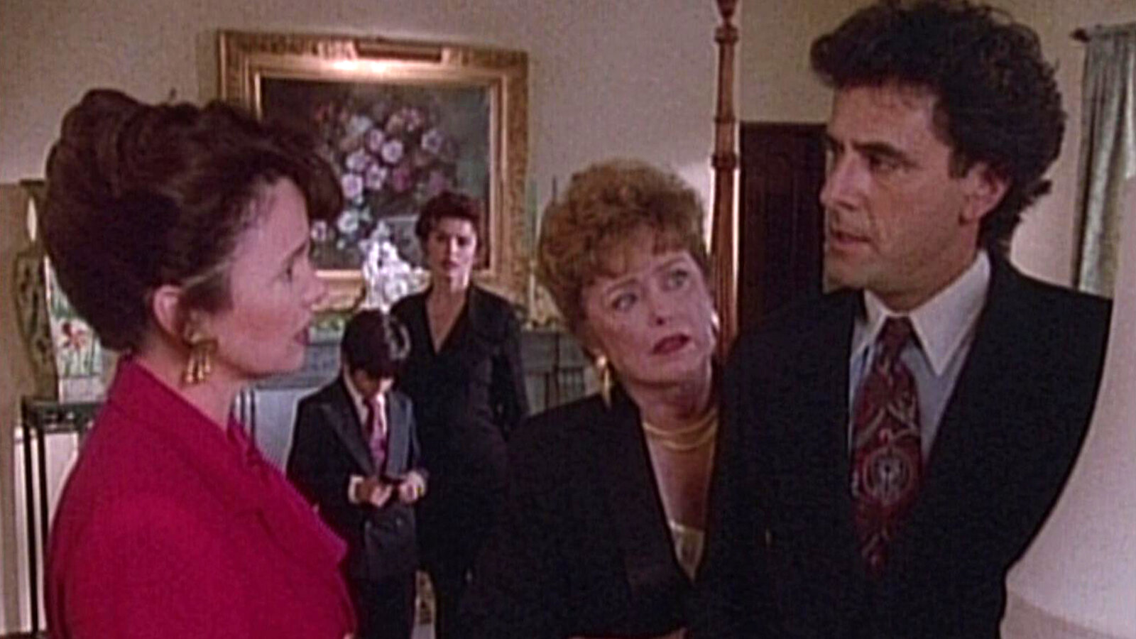 Eine ehrenwerte FamilieBarbara (Gail Edwards), Manny/Luis (Jonathan Hernandez), Monica (Roma Downey), Amelia (Rue McClanahan), Harrison (Robin Thomas) Verwendung nur in Verbindung mit Programmpromotion und Programmpresse. Jede andere Nutzung ist streng untersagt.Bild: © CBS Studios International ALL RIGHTS RESERVED
