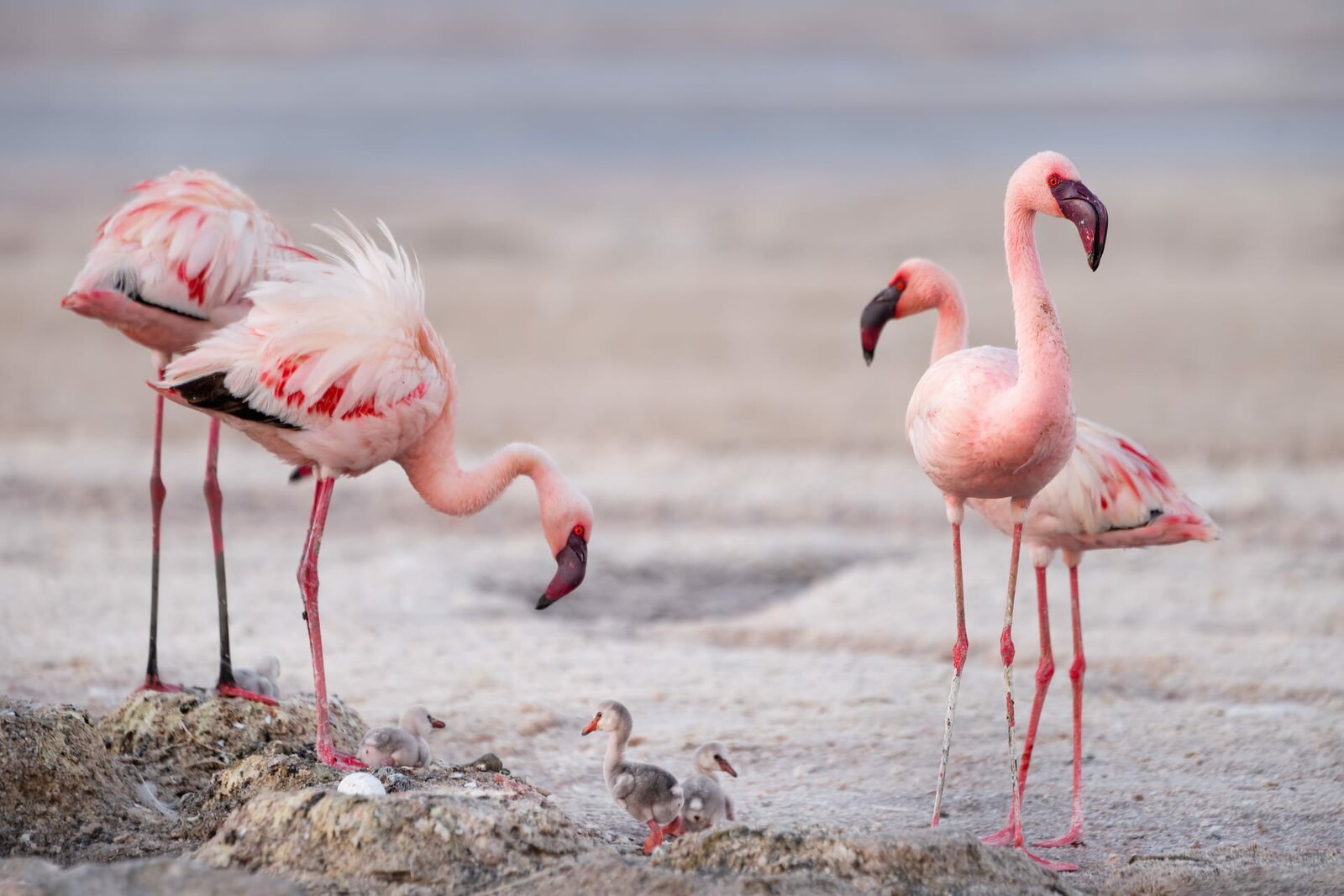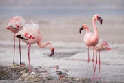 VulkaneFür die Zwergflamingos bietet der Natronsee in Tansania eine außergewöhnliche Möglichkeit, ihre Jungen großzuziehen. Wenn das Wasser des Sees während der Trockenzeit verdunstet, schützt eine viele Quadratkilometer breite unwirtliche Salzwüste die Flamingos vor den meisten Raubtieren.Bild: © ZDF und Darren Williams.