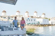 Ein Sommer auf MykonosJana Johannson (Valerie Huber) lernt während ihres Urlaubs in Mykonos den griechischen Dorfpolizisten Nikos Sakalidis (Daniel Rodic) kennen und lieben.Bild: © ZDF und Antonis Farmakas.