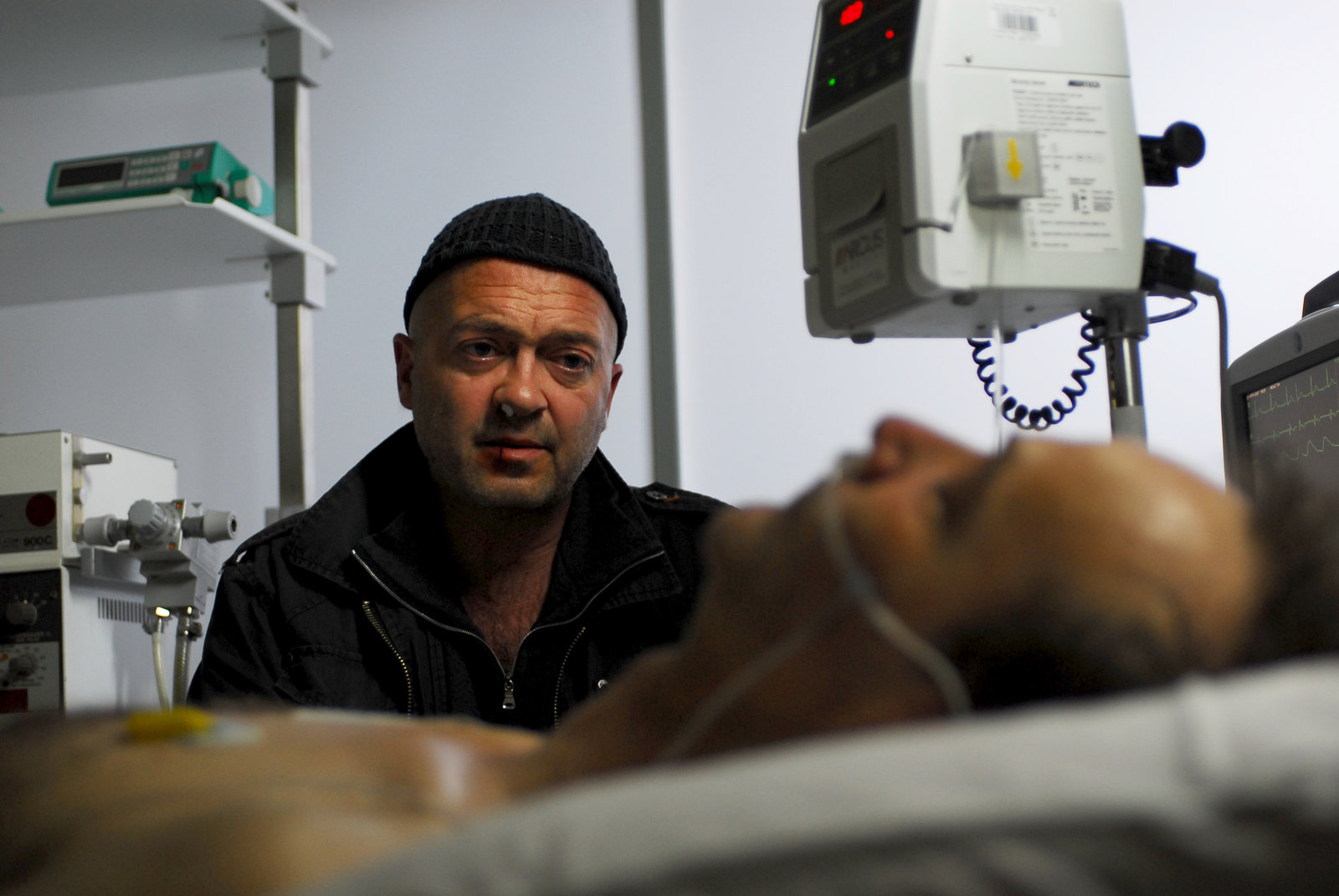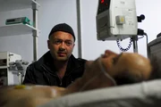 Mit aller MachtAuf der Intensivstation: Nachdem Reddemann (Arnfried Lerche, r.) bei dem blutigen Massaker in Sputniks Restaurant von einem Streifschuss schwer verwundet wurde, schwebt er in Lebensgefahr. Otto (Florian Martens, l.) macht sich große Sorgen und bleibt an der Seite seines Chefs.Bild: © ZDF und Jiri Hanzl