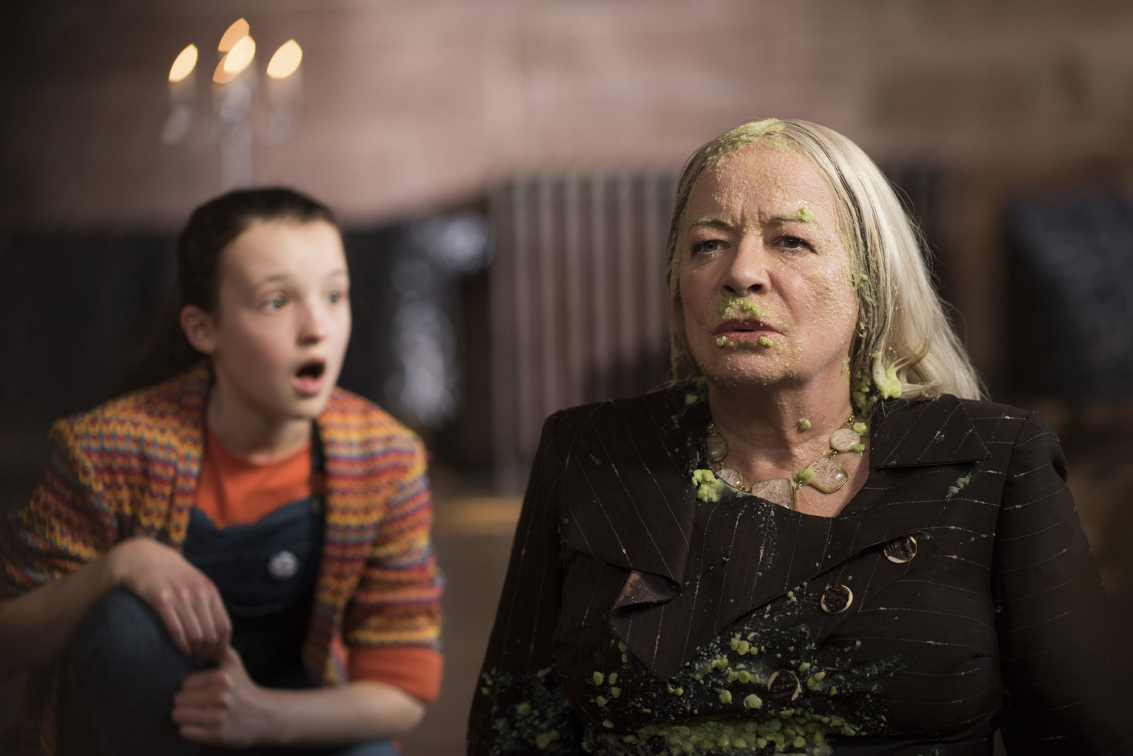 Die neue KunstlehrerinMildred (Bella Ramsey, r.) ist entsetzt, dass ihre Mutter Julie (Nicola Stephenson) als neue Kunstlehrerin an der Akademie, immer wieder Opfer von Streichen wird. Mutter und Tochter werden es Esther, die hinter diesen gemeinen Aktionen steckt, noch zeigen.Bild: © ZDF/James Stack