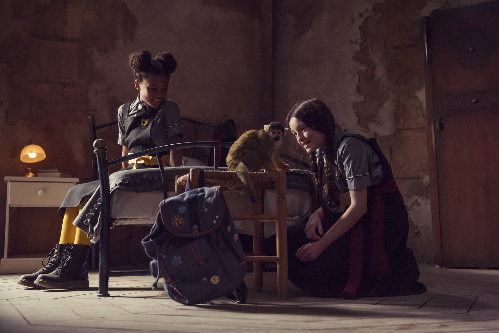 Der gestohlene ZauberDie Erstklässler kommen neu an die Akademie. Clarissa (Kitty Slack, l.) und Beatrix (Ynez Williams) begrüßen sich. Sie kennen sich bereits von der Aufnahmeprüfung.Bild: © ZDF und James Stack.