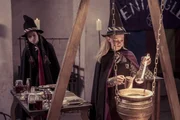 Treffen am KristallseeMildred (Lydia Page, l.) hofft, durch einen Zauber mit Hilfe des Kristallsees in die Zukunft blicken zu können. Dass das möglich sei, hatte ihr die junge Jessica Nieswurz am Morgen am Zauberspiegel versprochen. Doch die junge Jessica hat sich in eine alte gefährliche Hexe (Wendy Patterson) verwandelt.Bild: © ZDF/James Stack