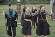 Das FamiliengeheimnisMildreds Mutter Julie (Nicola Stephenson, links) ist rechtzeitig zur Rettung der Akademie gekommen und kann nun mit ihrer Tochter (Bella Ramsey, 2. von rechts) und deren beiden Freundinnen Edith (Tamara Smart, 2. von links) und Maude (Megan Hughes, rechts) sehen, wie sich der Grundstein wieder mit Energie auflädt.ÂBild: © ZDF/James Stack