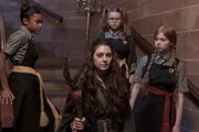 Die Helfer-Schutzgeist-AufgabeMildred (Lydia Page, r.) tritt im Wettbewerb der Schulsprecherinnen an. Als erstes muss sie die Helfer-Schutzgeist-Aufgabe lösen. Dabei unterstützen sie die beiden Freundinnen - Edith (Tamara Smart, l.) und Maude (Megan Hughes, 2.v.r). Zusammen haben sie Grausteins allererste Schulsprecherin "Gertrude, die Große" (Elizabeth Dormer-Phillips) mit einem Wiederbelebungszauber aus einem alten Gemälde herausgelöst.Bild: © ZDF/James Stack