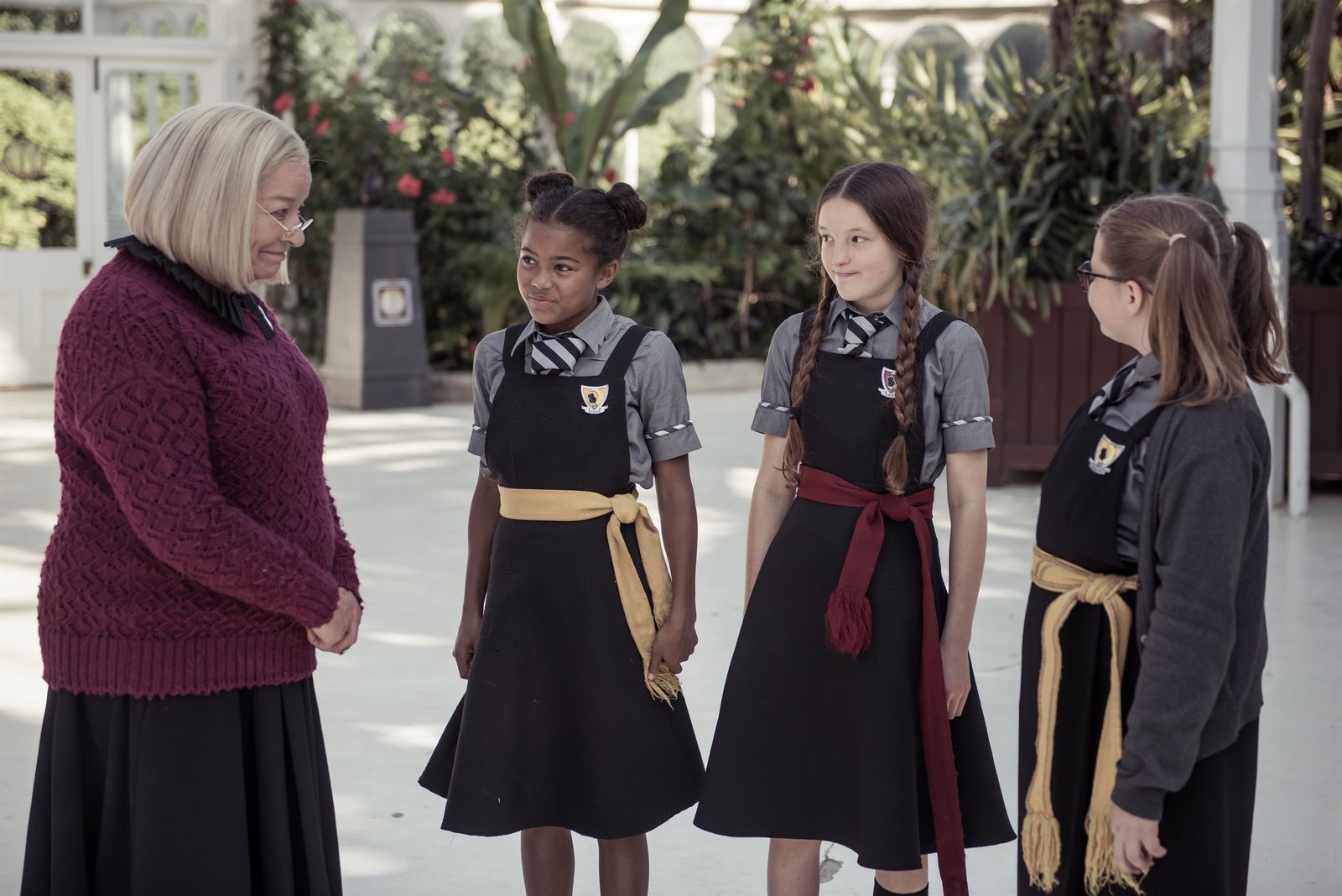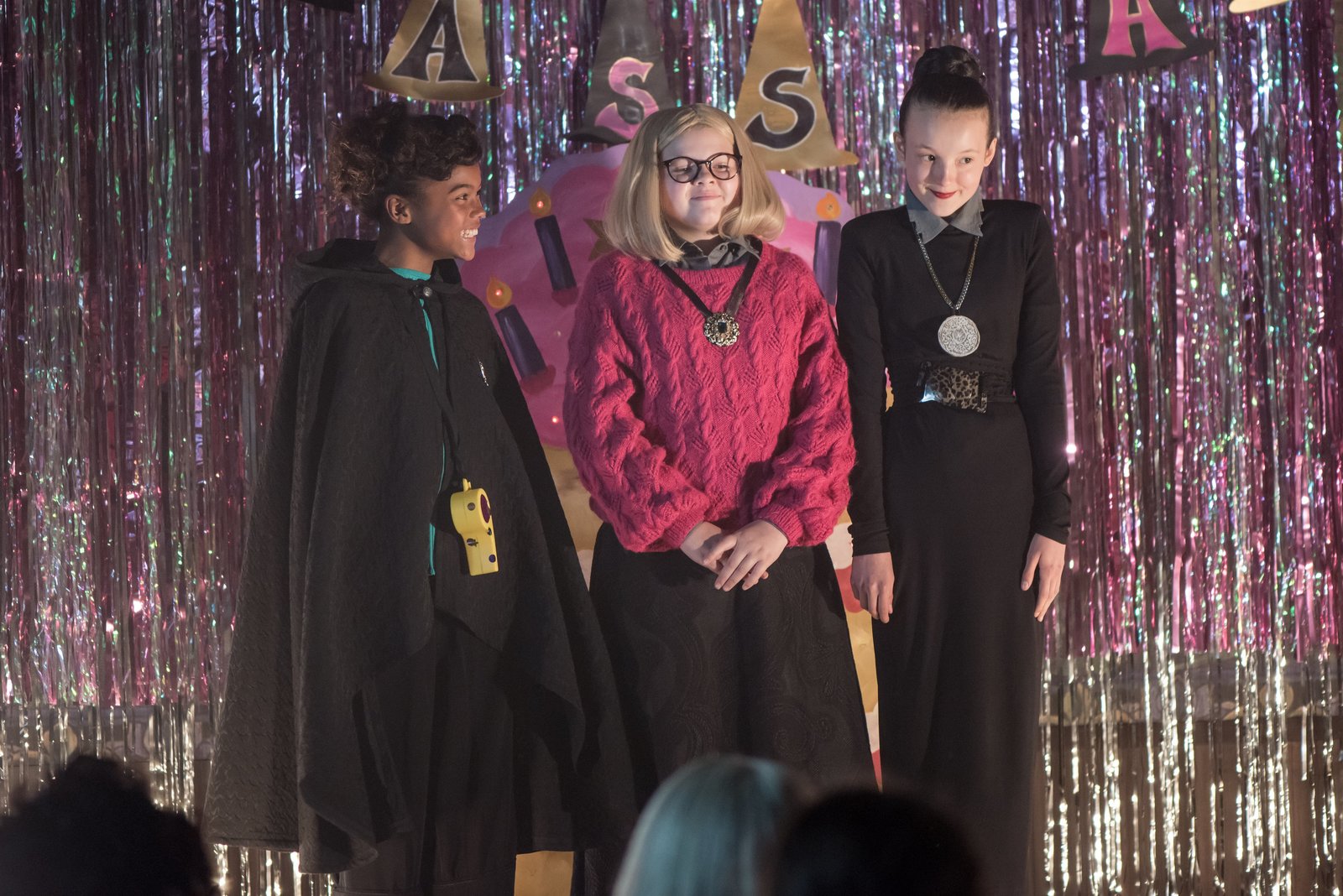 Ein turbulenter GeburtstagFrau Graustein hat Geburtstag. Am Abend auf dem öberraschungsfest bieten die drei Freundinnen - Edith, Maude und Mildred (Tamara Smart, Megan Hughes u. Bella Ramsey, v. l. n. r.) - eine Aufführung dar.ÂBild: © ZDF/James Stack