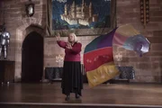 Die Aufnahmeprüfung (2)Ada Graustein (Clare Higgins), die Direktorin der Hexenakademie, trägt gerade ein Duell gegen ihre Zwillingsschwester aus. Dabei sieht sie den fliegenden Wandbehang nicht auf sich zukommen.Bild: © ZDF und (c) BBC/ZDF Enterprises