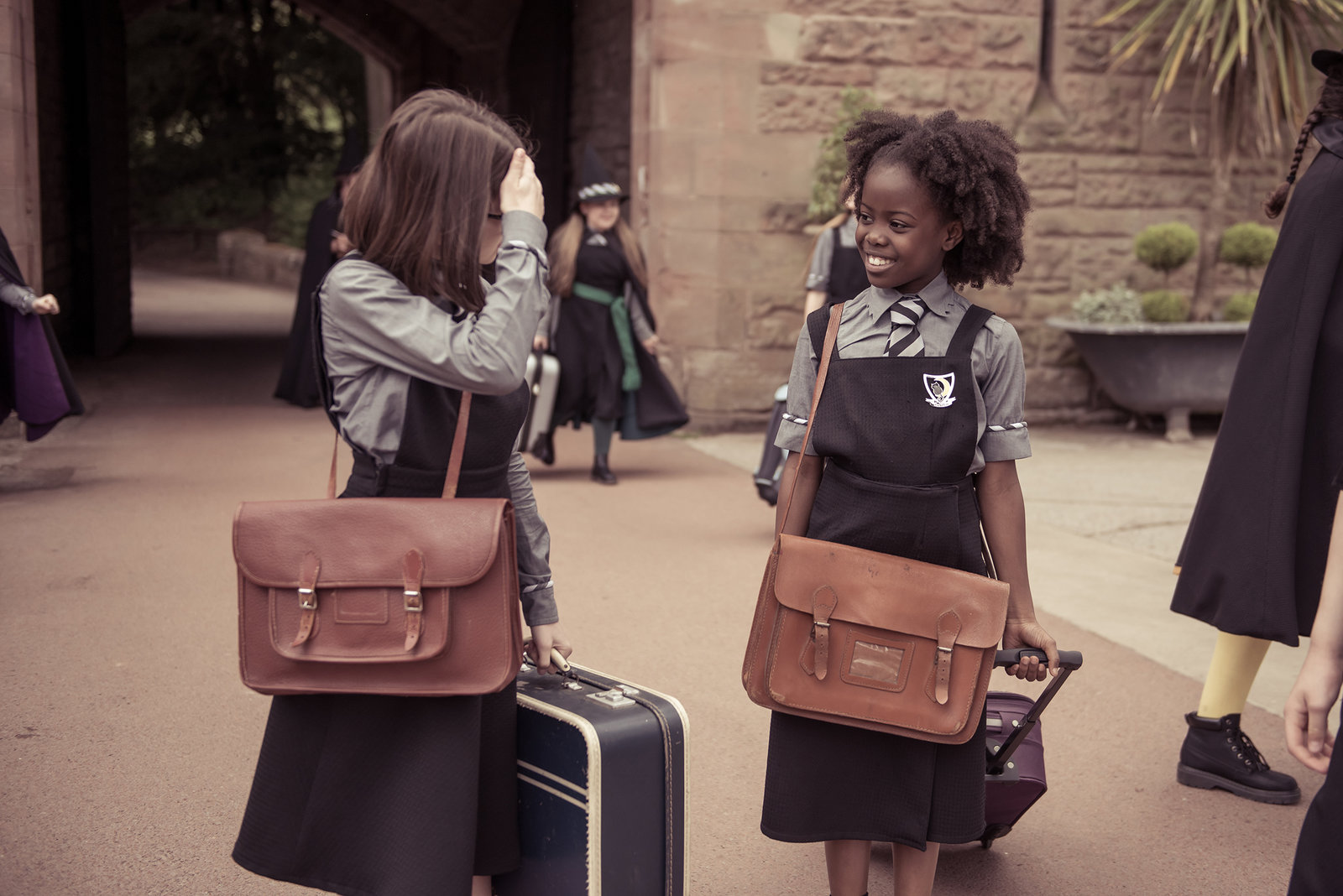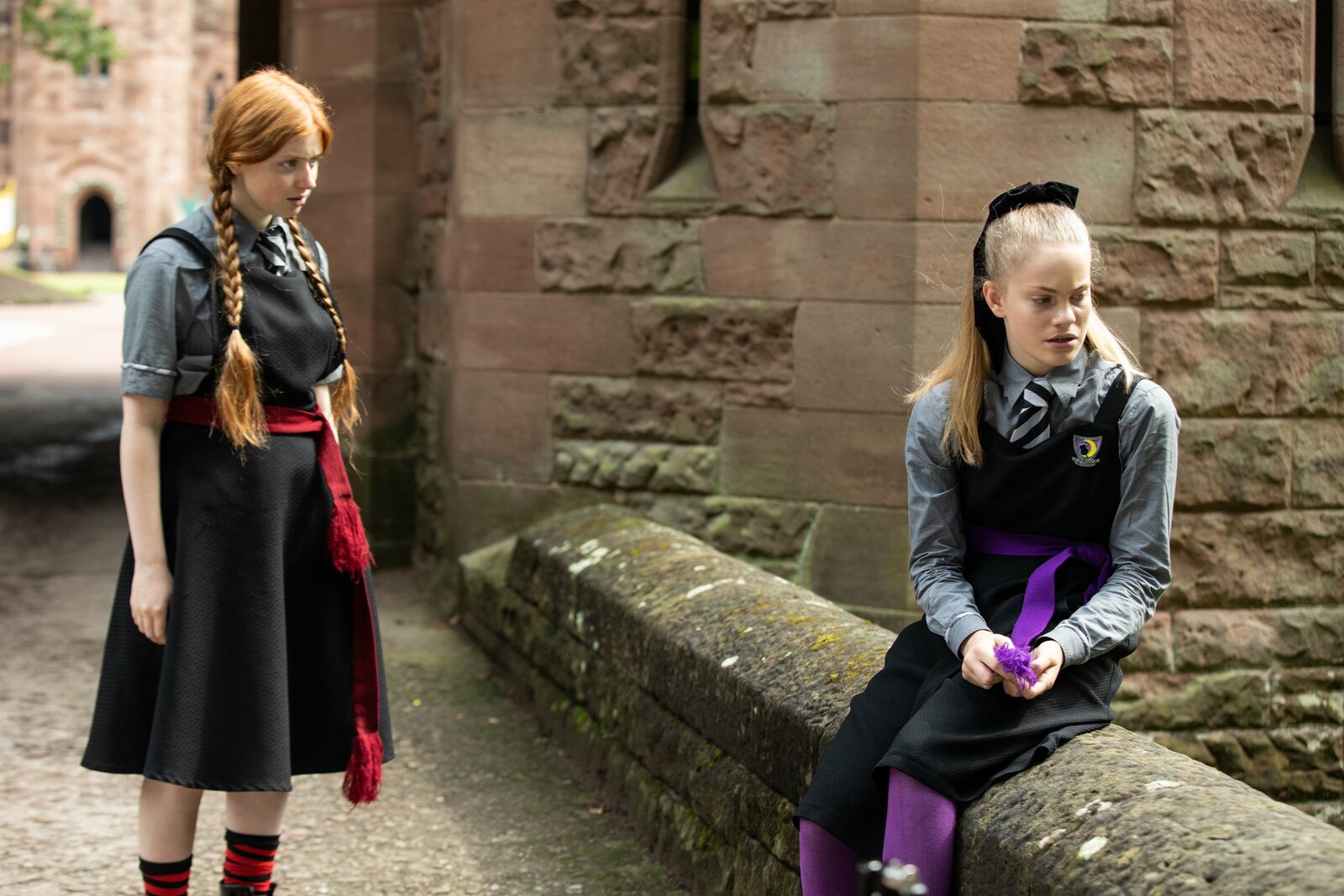 Der gestohlene ZauberDie Erstklässler kommen neu an die Akademie. Clarissa (Kitty Slack, l.) und Beatrix (Ynez Williams, r.), begrüüen sich. Sie kennen sich bereits von der Aufnahmeprüfung.ÂBild: © ZDF/James Stack