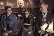 Maudes größter FehlerEs ist Elternabend an der Graustein-Akademie und Maude (Meibh Campbell, M.) ist gespannt, ob ihr Vergessenszauber gewirkt hat. Ob alle Lehrer ihre Missetaten vergessen haben, so dass ihre Eltern (Lynsey-Anne Moffat, l. und Henry Miller, r.) stolz auf sie sein können.Bild: © ZDF und James Stack (c) BBC/ZDF Enterprises