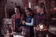 Maudes größter FehlerMildred (Bella Ramsey, r.) und ihre Freundinnen Edith (Tamara Smart, l.) und Maude (Meibh Campbell, M.) haben einen Zaubertrank mit durchschlagender Wirkung hergestellt.Bild: © ZDF und James Stack (c) BBC/ZDF Enterprises