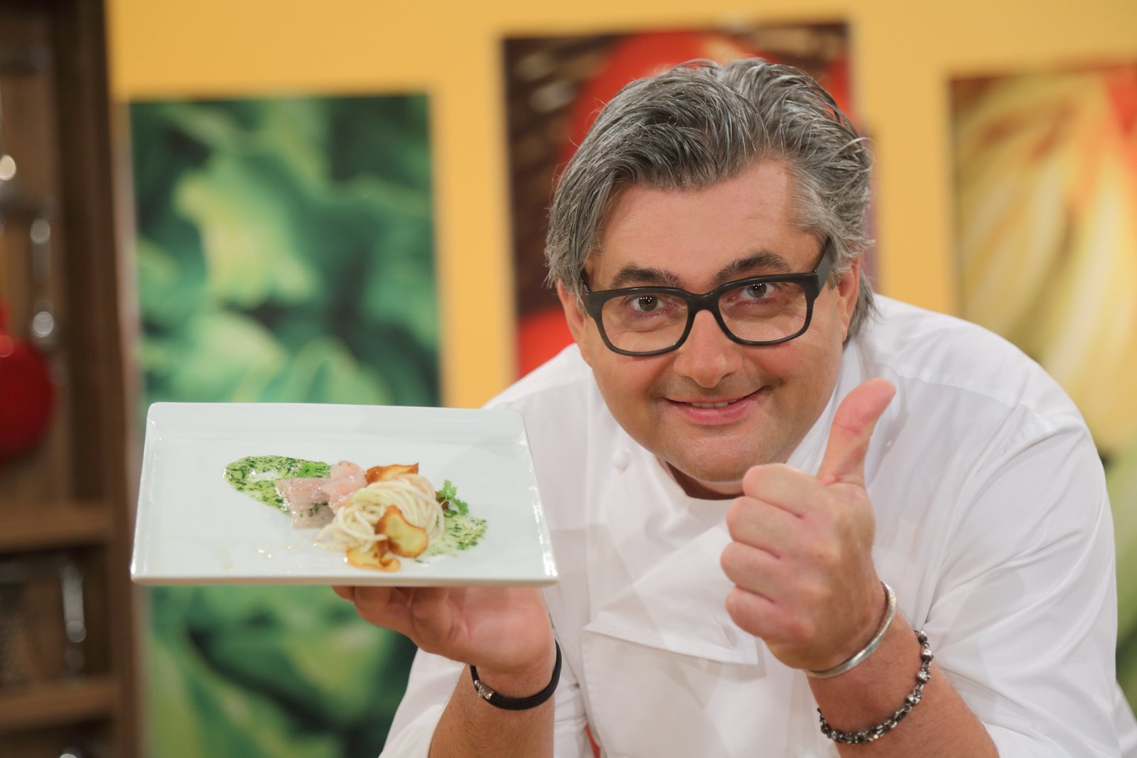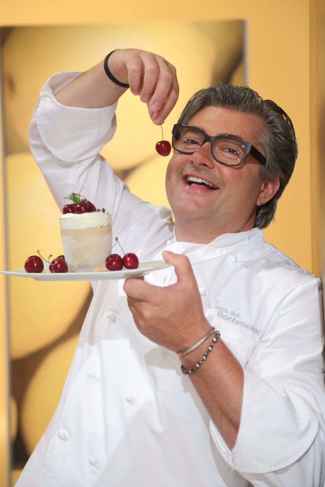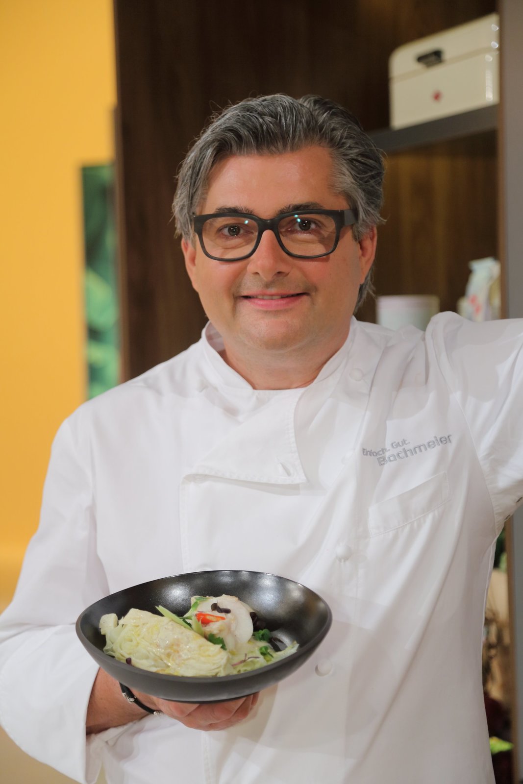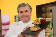 Kalbstartar mit bayerischem Kimchi / Zander mit Mairübchen, Kartoffeln und roter Buttersoße / Gratinierte Himbeeren mit Topfen und GranolaDer niederbayerische Spitzenkoch Hans Jörg Bachmeier.Bild: © Foto Sessner / BR / BR/Foto Sessner