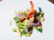 Nudel-Hackfleisch-Auflauf / Shrimpssalat mit Cocktailsoße / Rupfhauben / CarpaccioShrimpssalat mit Cocktailsauce.Bild: © BR/Jürgen Endriß