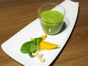 Salat von Gurkenspaghetti und Hendl / Filoteigpizza mit Tomaten und Mozzarella / Sauerkrautknödel / Popeye-SmoothiePopeye-Smoothie.Bild: © BR/Jürgen Endriß