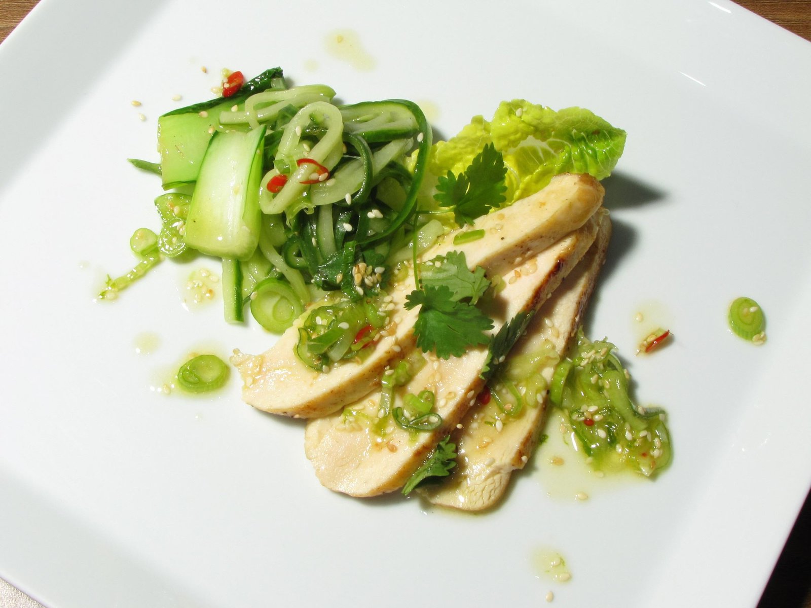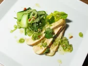 Salat von Gurkenspaghetti und Hendl / Filoteigpizza mit Tomaten und Mozzarella / Sauerkrautknödel / Popeye-SmoothieSalat von Gurkenspaghetti und Hendl.Bild: © BR/Jürgen Endriß