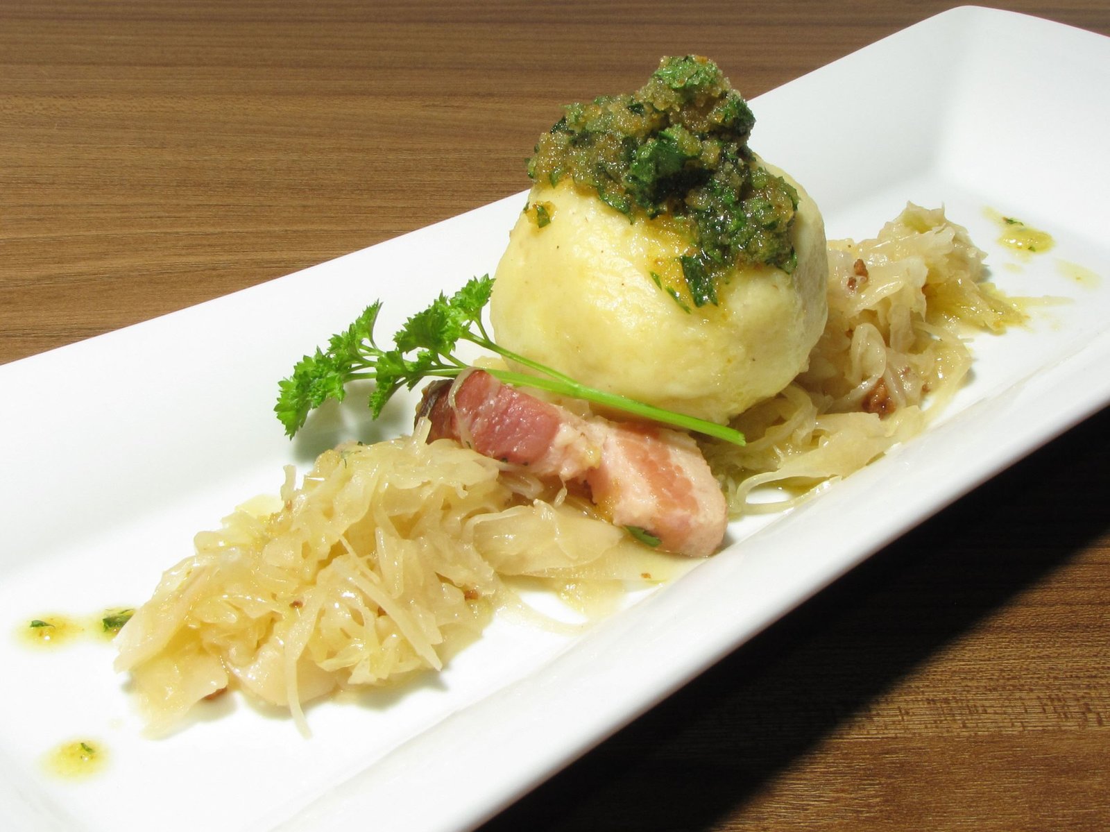 Salat von Gurkenspaghetti und Hendl / Filoteigpizza mit Tomaten und Mozzarella / Sauerkrautknödel / Popeye-SmoothieSauerkrautknödel.Bild: © BR/Jürgen Endriß