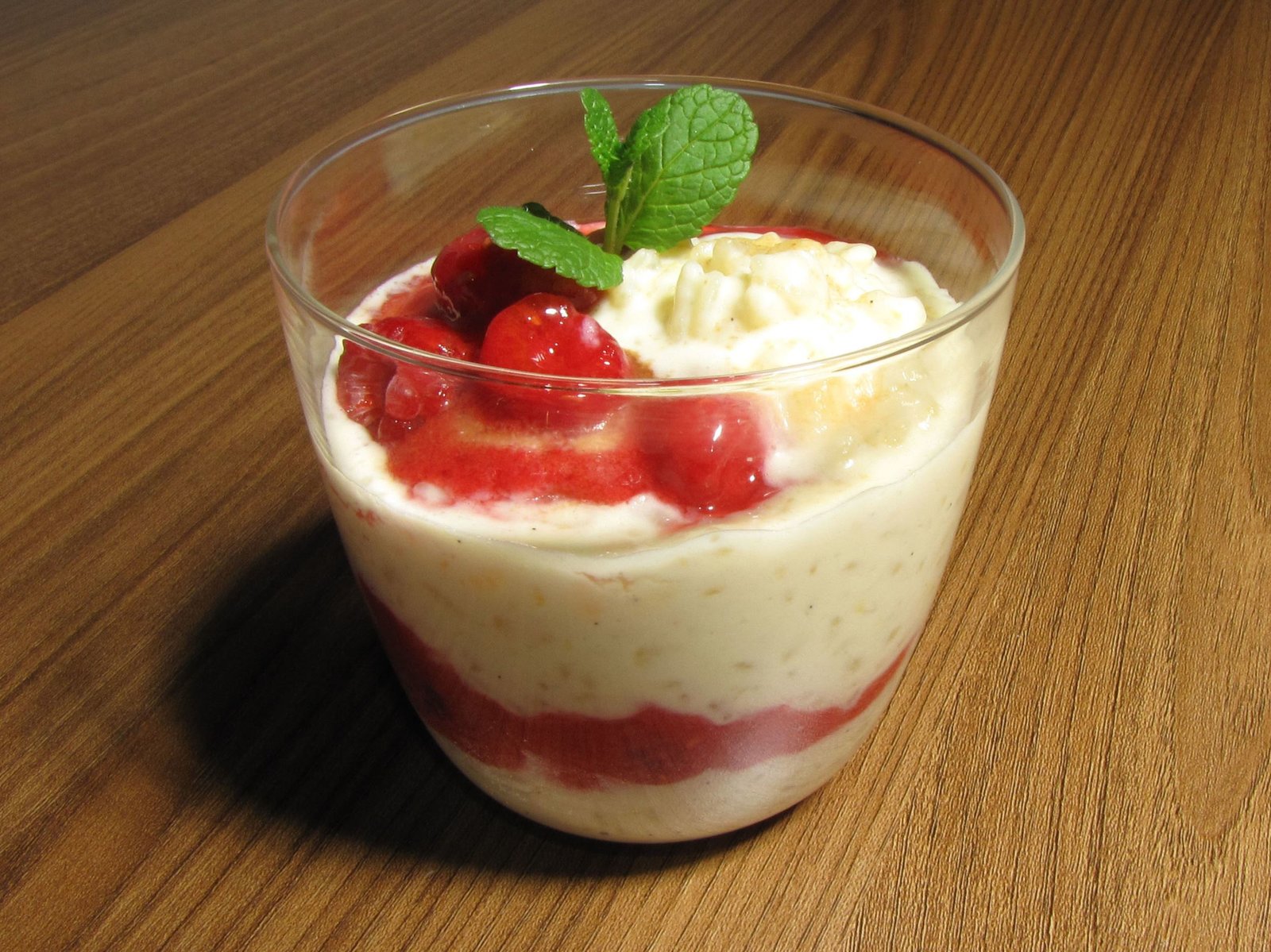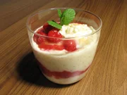 Pochiertes Ei mit Rahmspinat / Gebratene Entenbrust mit Kartoffelgratin / Milchreis mit HimbeerenMilchreis mit Himbeeren.Bild: © BR/Jürgen Endriß
