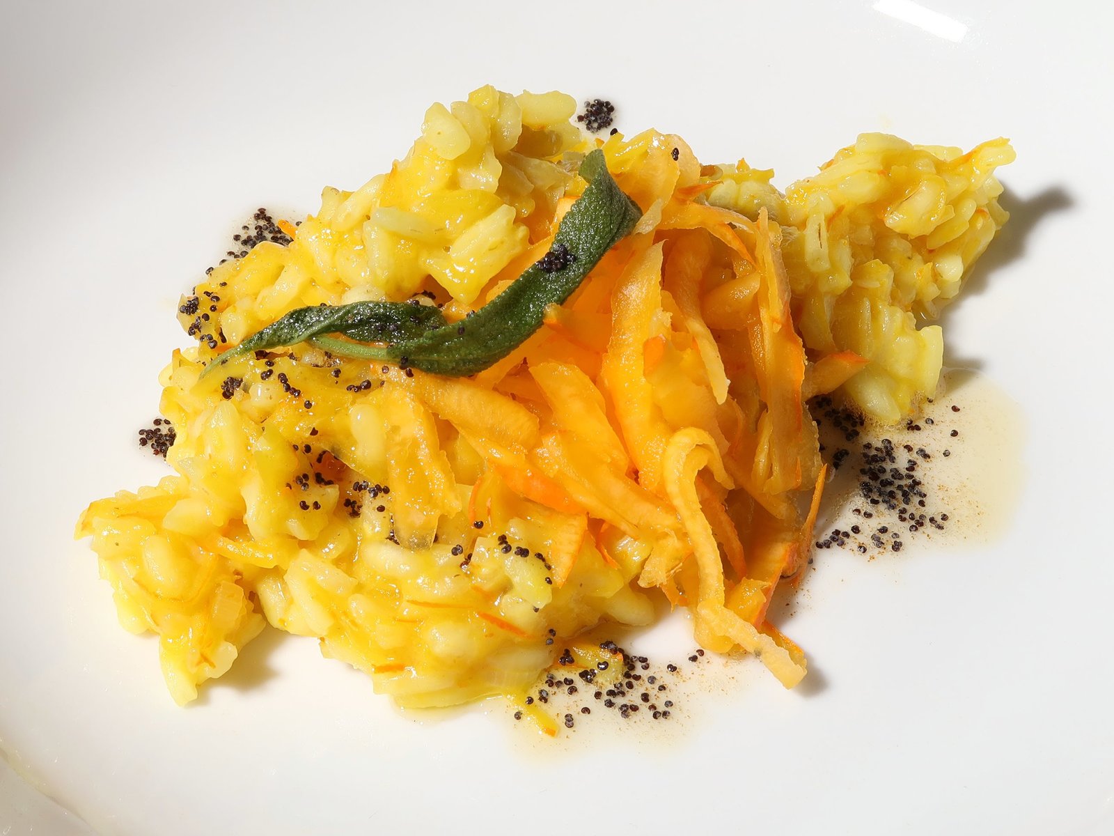 Kürbis-Risotto mit Mohnbutter / Seeteufel mit Spinat-Gnocchi / Zwetschgen-BaveseKürbis-Risotto mit Mohnbutter.Bild: © BR/Jürgen Endriß