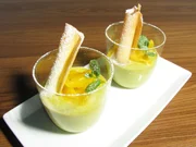 Gelbe Linsensuppe / Zitronenhendl / Gebackene GrießschnittenErdbeer-Kaltschale.Bild: © BR/Jürgen Endriß