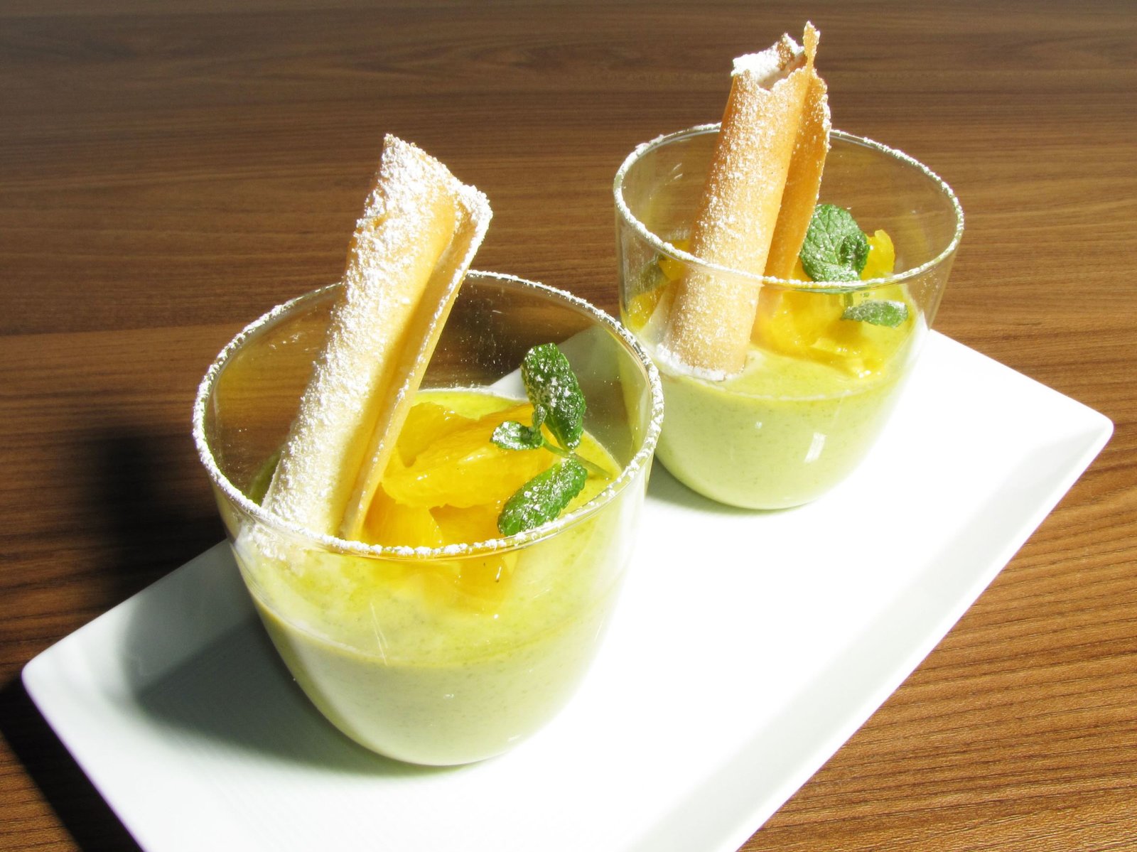 Lachscarpaccio mit roh mariniertem Spargel / Spareribs mit Maisgemüse und Kartoffel-Wedges / Pistaziencreme mit HippenPistaziencreme mit Hippen.Bild: © BR/Jürgen Endriß
