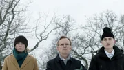 Sten (Johan Ulveson, Mitte.) mit seinen Kindern Aron (Gustav Lindh, re.) und Clara (Josephine Bornebusch, li.) nehmen Abschied.