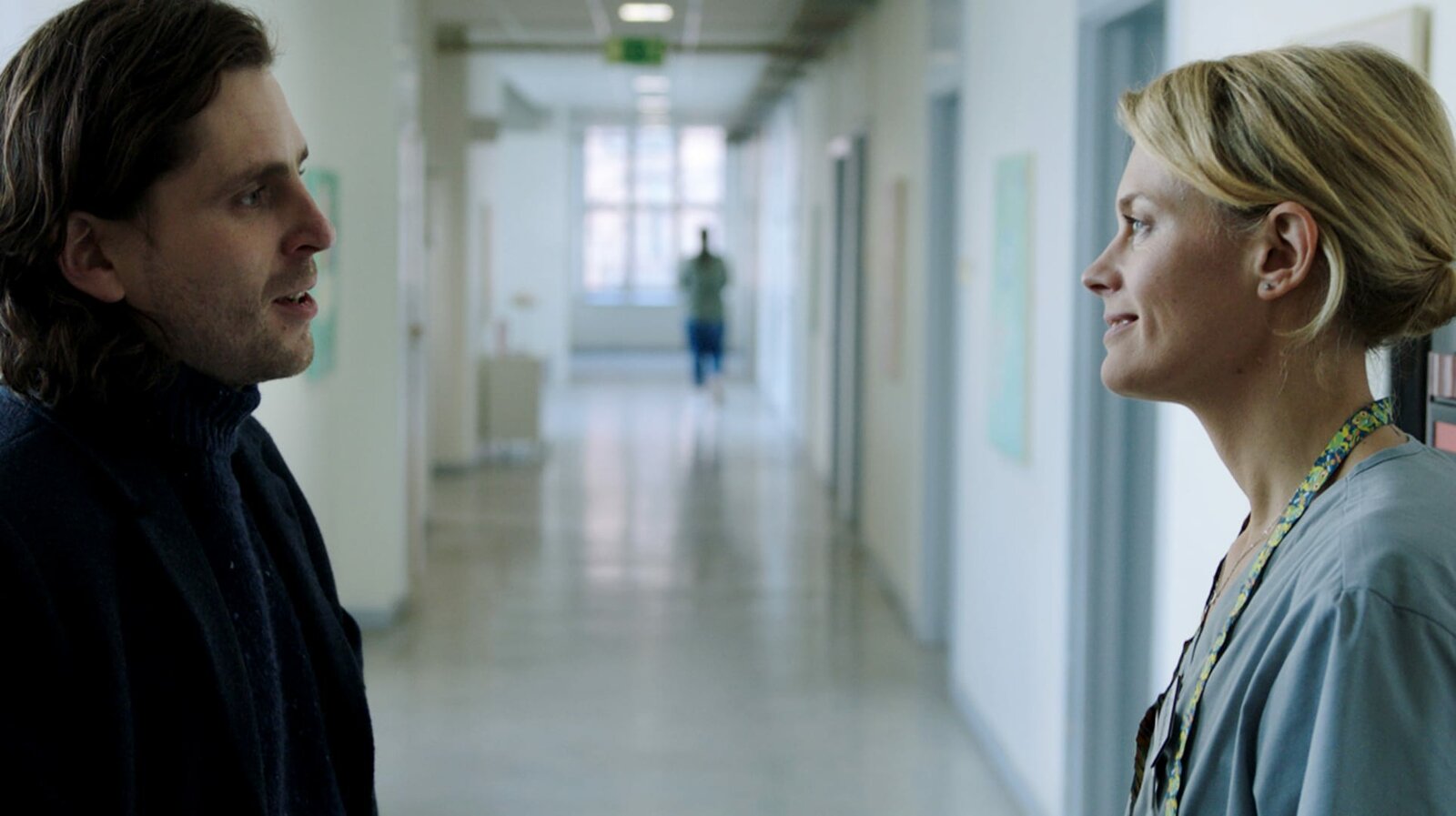 Wer nicht wagt ...Die Ärztin Clara (Josephine Bornebusch) bekommt unerwarteten Besuch von ihrem Nachbar Peter (Sverrir Gudnason) im Krankenhaus.Bild: © Viaplay/Frida Wendel